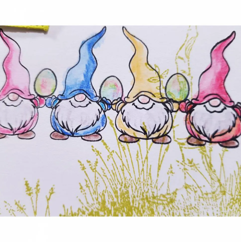 Sechs Wichtel / Gnome bringen große Ostereier und haben Spaß dabei 🙂