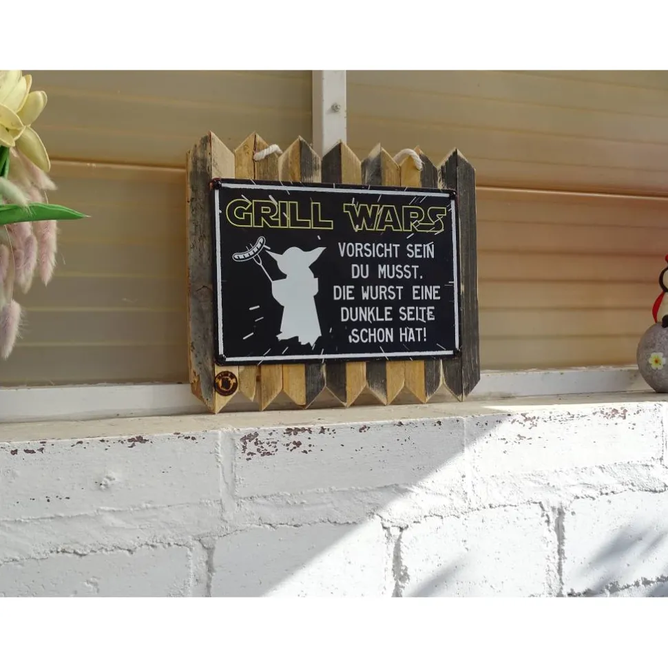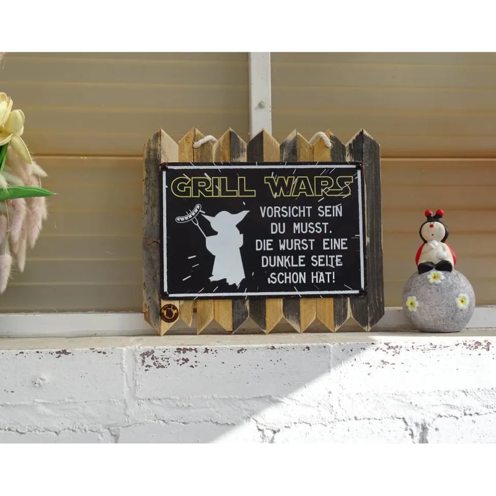 Für alle Grillmeister und Humorfreunde: dieses Blechschildauf Altholz vereint rustikalen Charme und Augenzwinkern. Jedes Schild wird inHandarbeit gefertigt: Ich säge, schleife, leime das Holz undkombiniere es mit hochwertigem Metall.