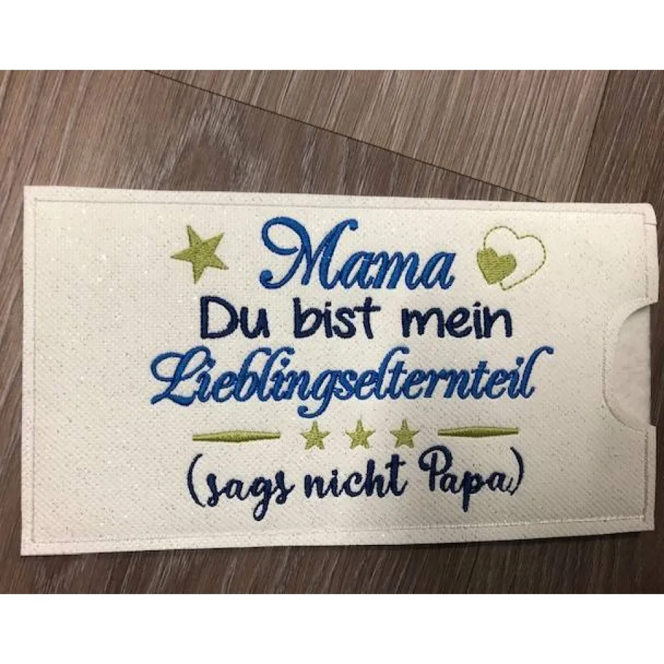 Lustiges Geschenk Schokihülle Schokoladenhülle/ Schokitasche/ Schokiverpackung Handarbeit Mama gestickt