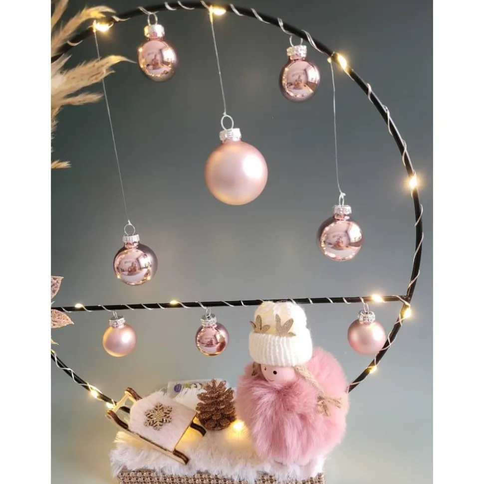 Dieser Metallring ist was Einzigartiges.Dekorativ mit Trockengesteck mit schwebene Glaskugeln.Alles in einem schönen rose und beige gehalten.
