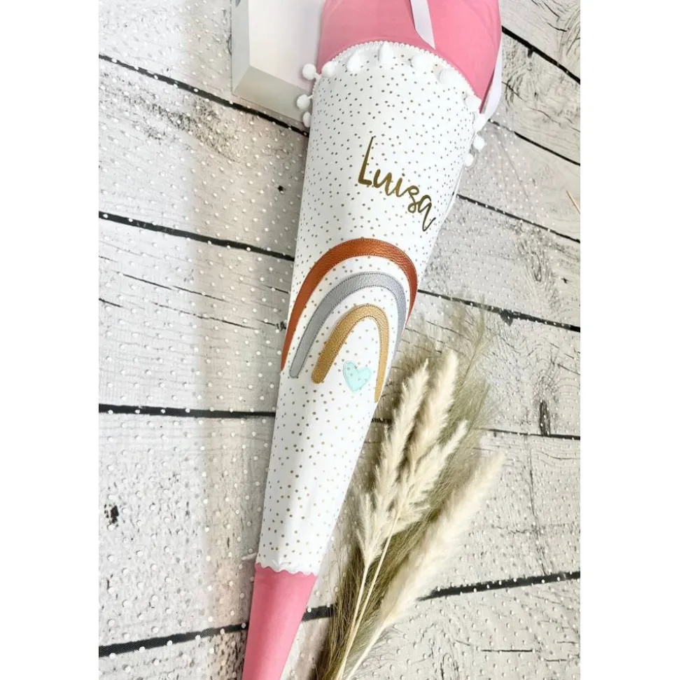 ♥♥ Schultüte aus Stoff „Regenbogen“ – Applikationen aus Kunstleder – gern mit goldenem Namen/Einschuldatum ♥♥