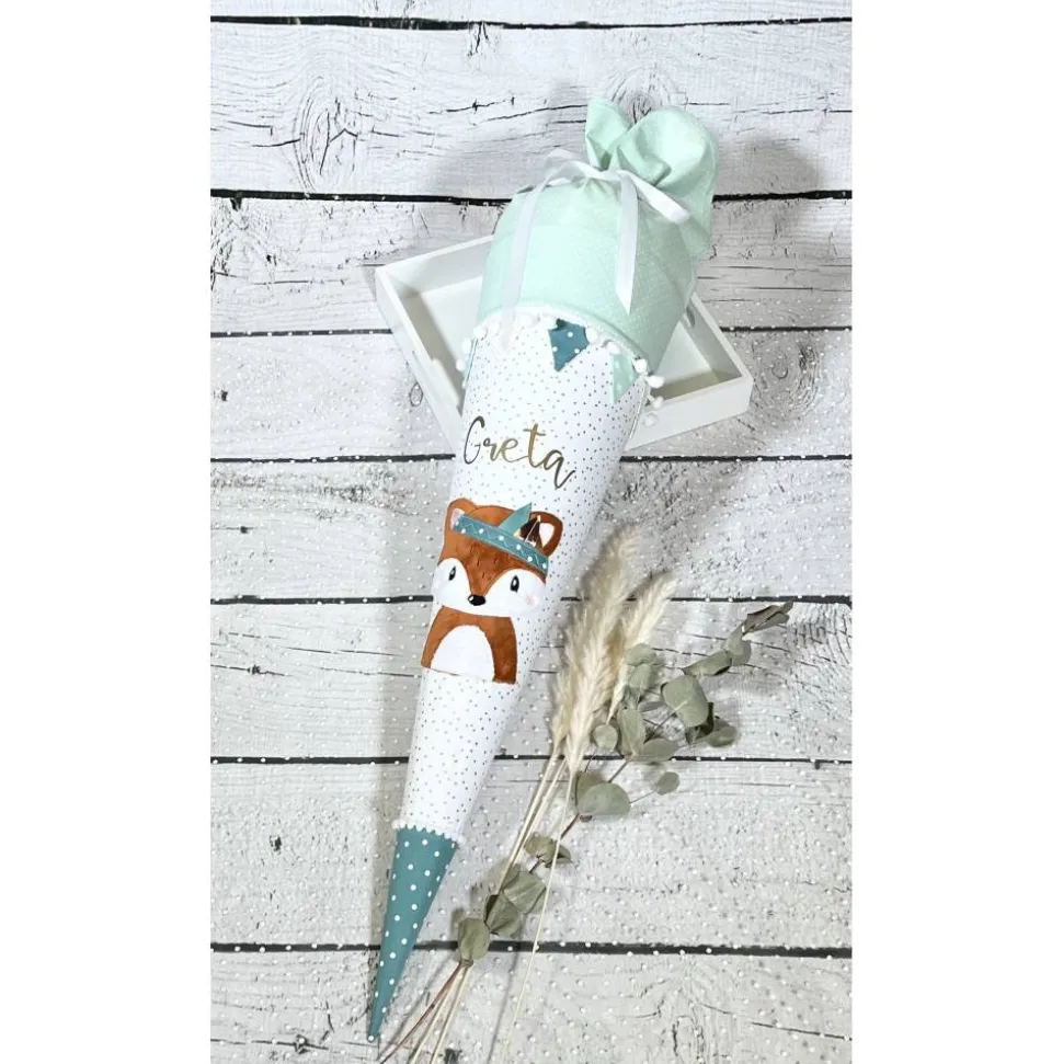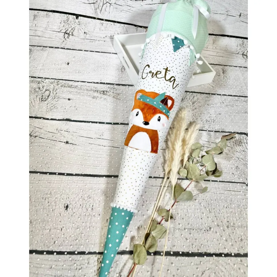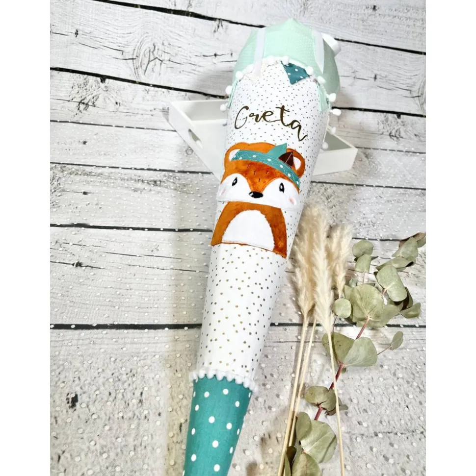 ♥♥ Mädchen Schultüte mit flauschigem Fuchs Fuchsmädchen „Foxi“ und Wimpelkette – gern mit aufgesticktem Namen/Einschuldatum ♥♥