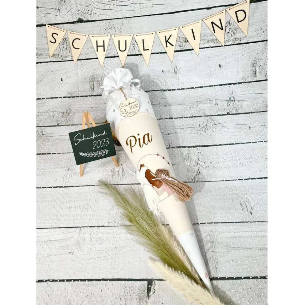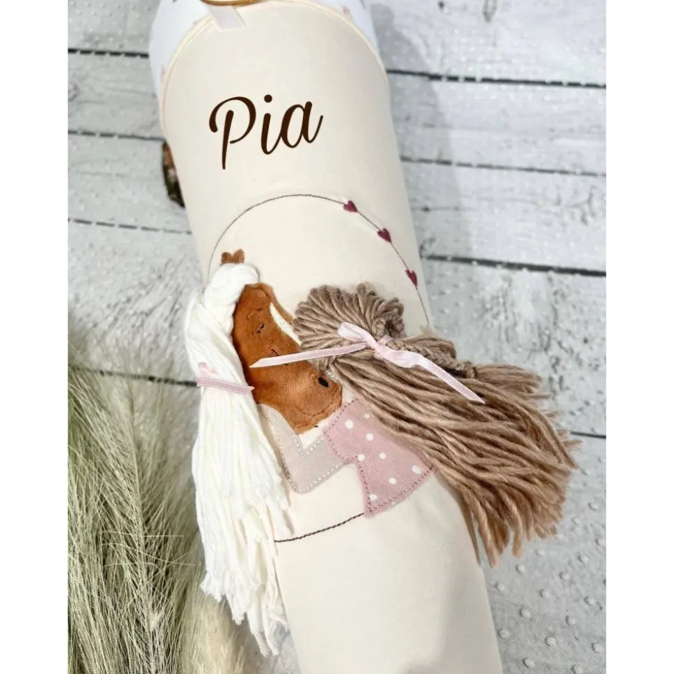 ☆ Schultüte aus Stoff mit flauschigem Pferd Alma und Mädchen – gern mit aufgesticktem Namen/Einschuldatum ☆