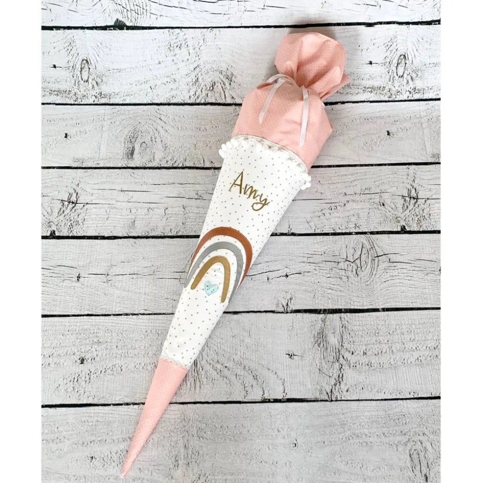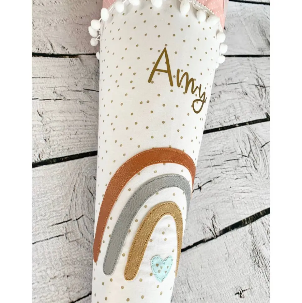 ♥♥ Schultüte aus Stoff „Regenbogen“ – Applikationen aus Kunstleder – gern mit goldenem Namen/Einschuldatum oder mit dem Schriftzug „Schulkind“ ♥♥