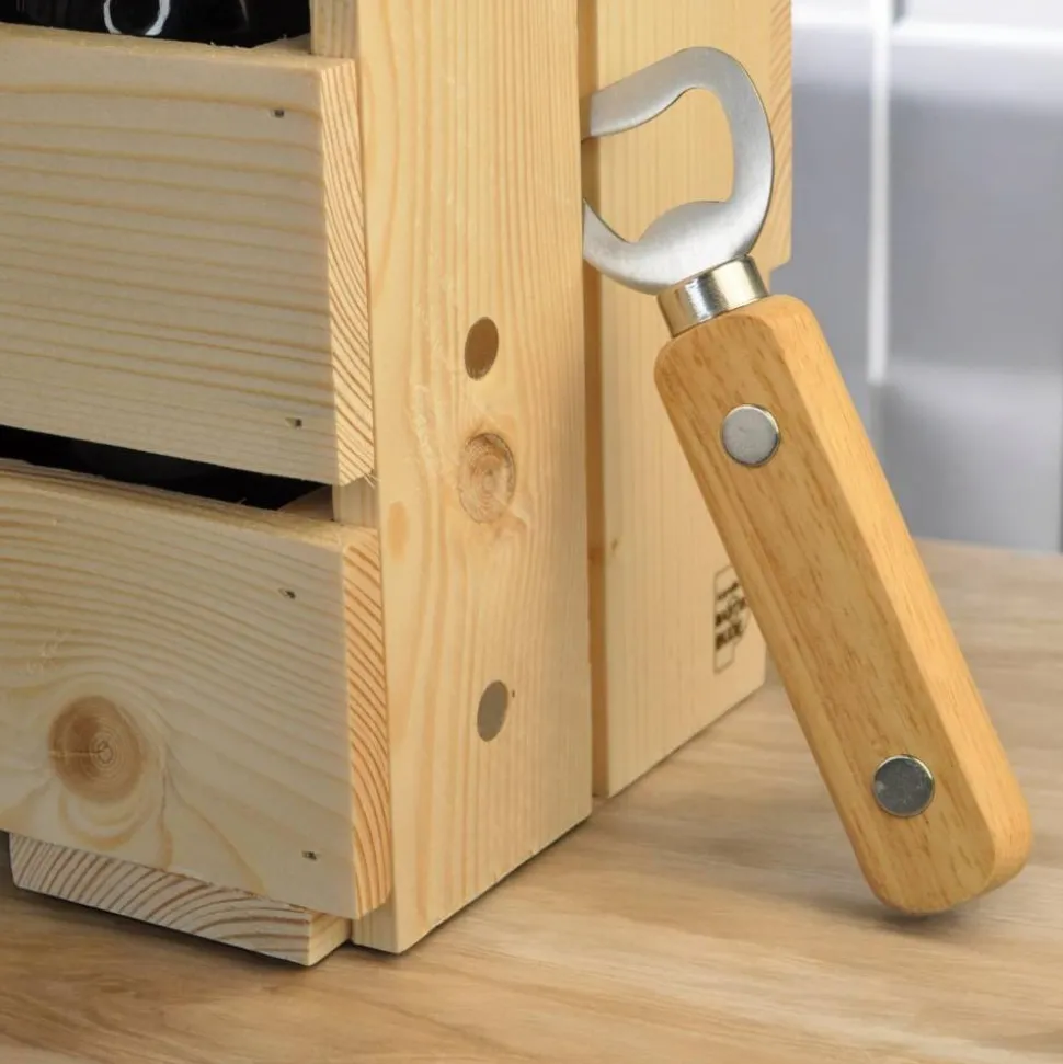 Der mitgelieferte Flaschenöffner ist mit zwei Magneten befestigt und somit immer griffbereit.