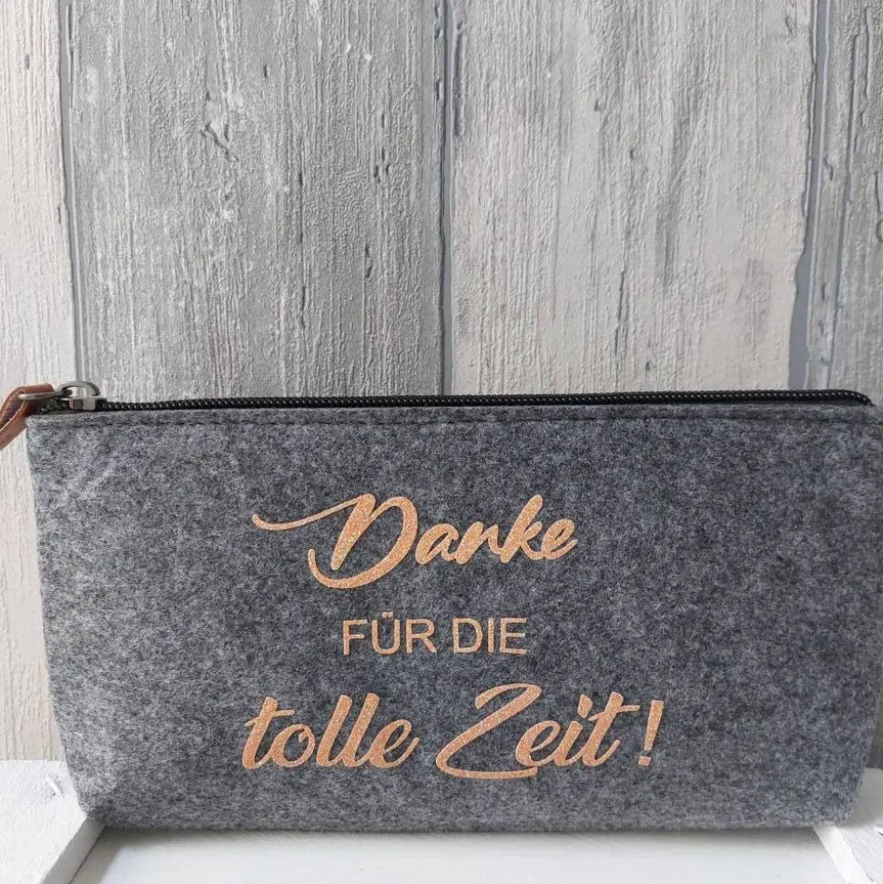 Sie ist mit einer Glitzerfolie in apricot beplottet.