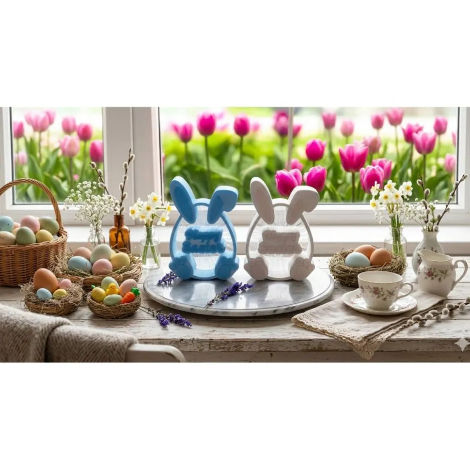 Suchst du nach einer Osterdekoration, die deine Gäste zum Staunen bringt? Unser schwebender „Happy Easter“ Aufsteller nutzt die faszinierende Kunst des 3D-Drucks, um einen magischen, fast schwerelosen Effekt zu erzeugen. Die Schrift scheint im Zentrum der Hasen-Silhouette zu schweben, gehalten von hauchdünnen, aber stabilen Strukturen. Die Maße sind 17 cm hoch, 12 cm breit und 4 cm tief.
