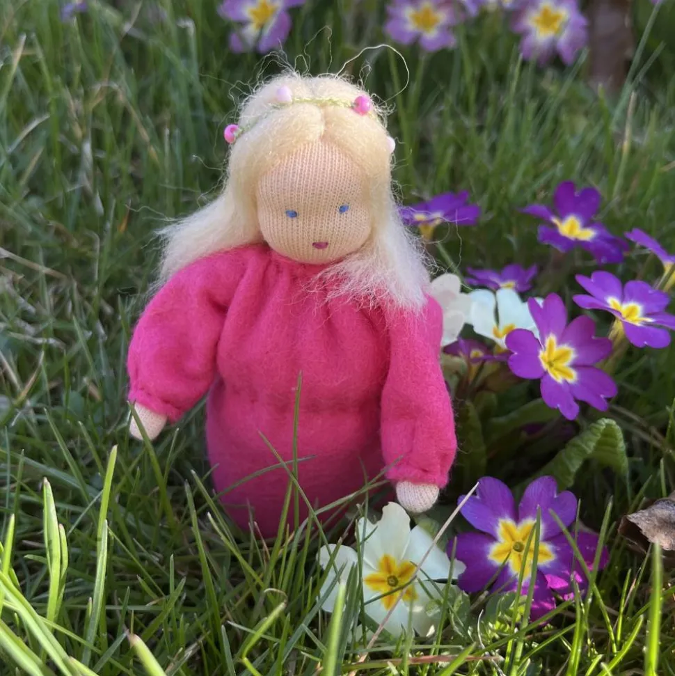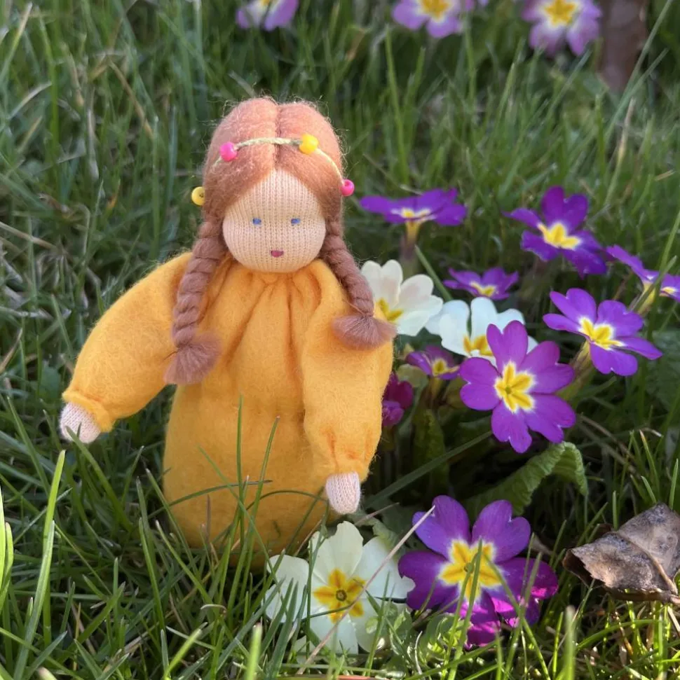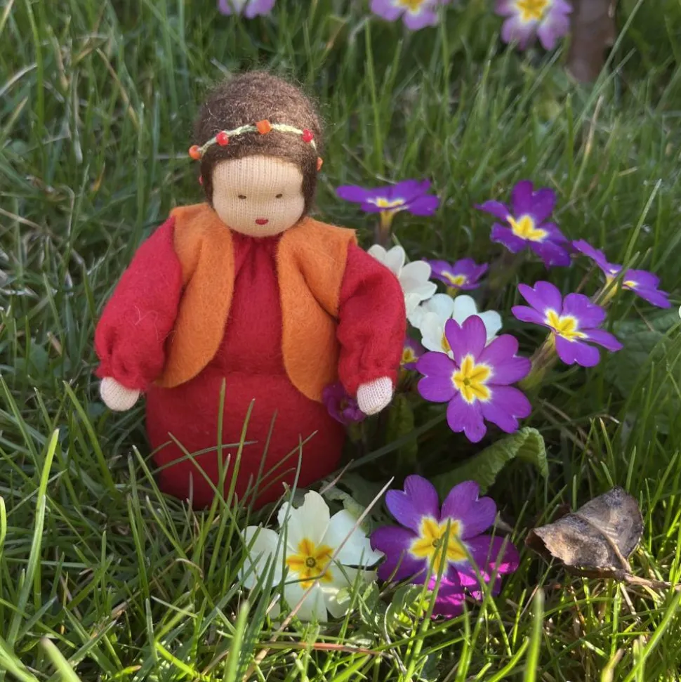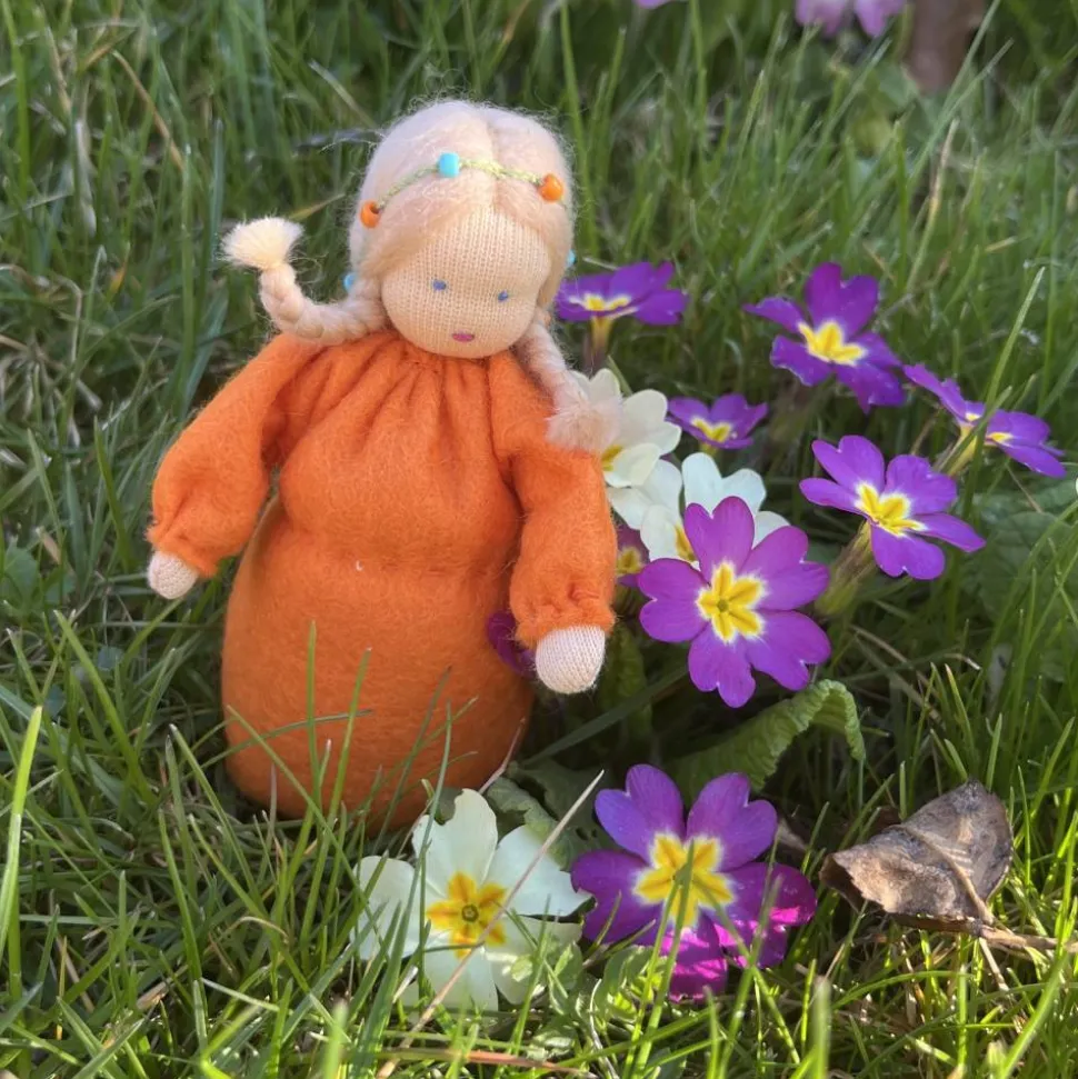 Das Püppchen ist unten geschlossen und für einen guten Stand unten mit feinem Dekokies und der Rest mit reiner Schurwolle gefüllt.