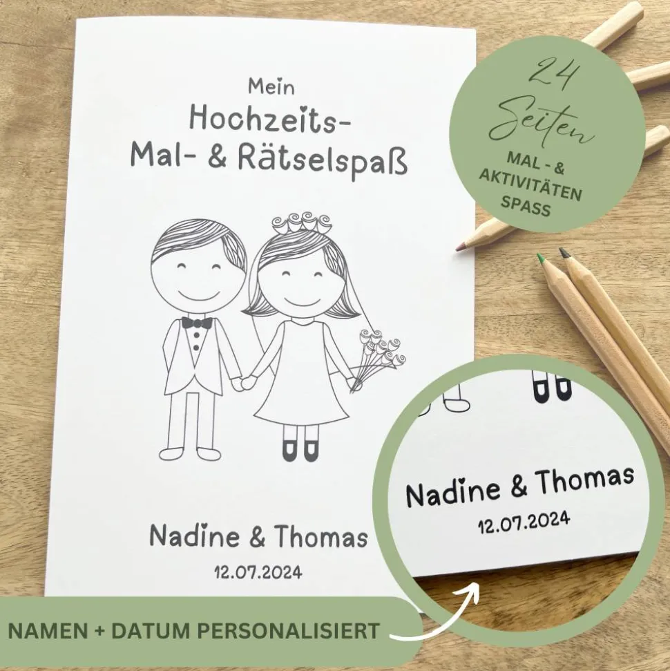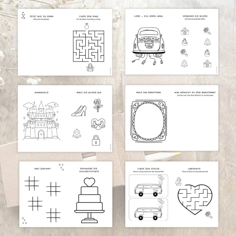 Mal – & Rätselbücher passend im Hochzeitsdesign.