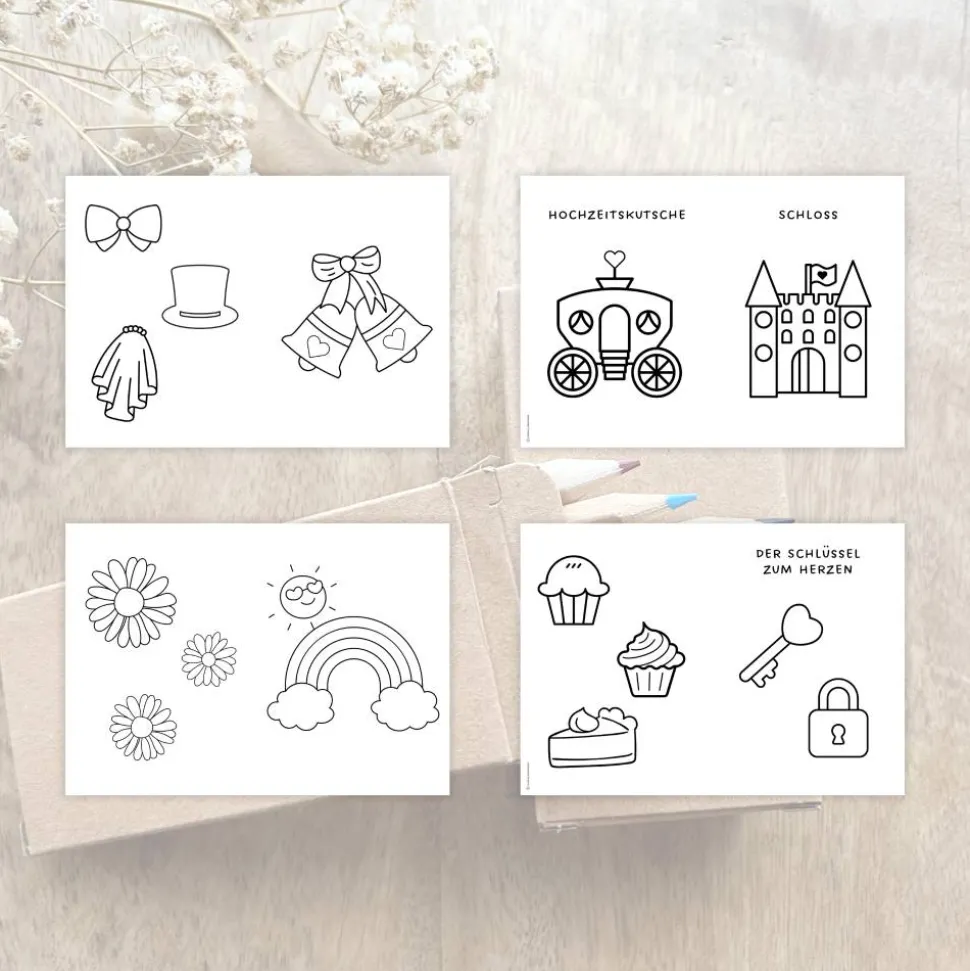 Ein tolles Malbuch passend im Hochzeitsdesign.