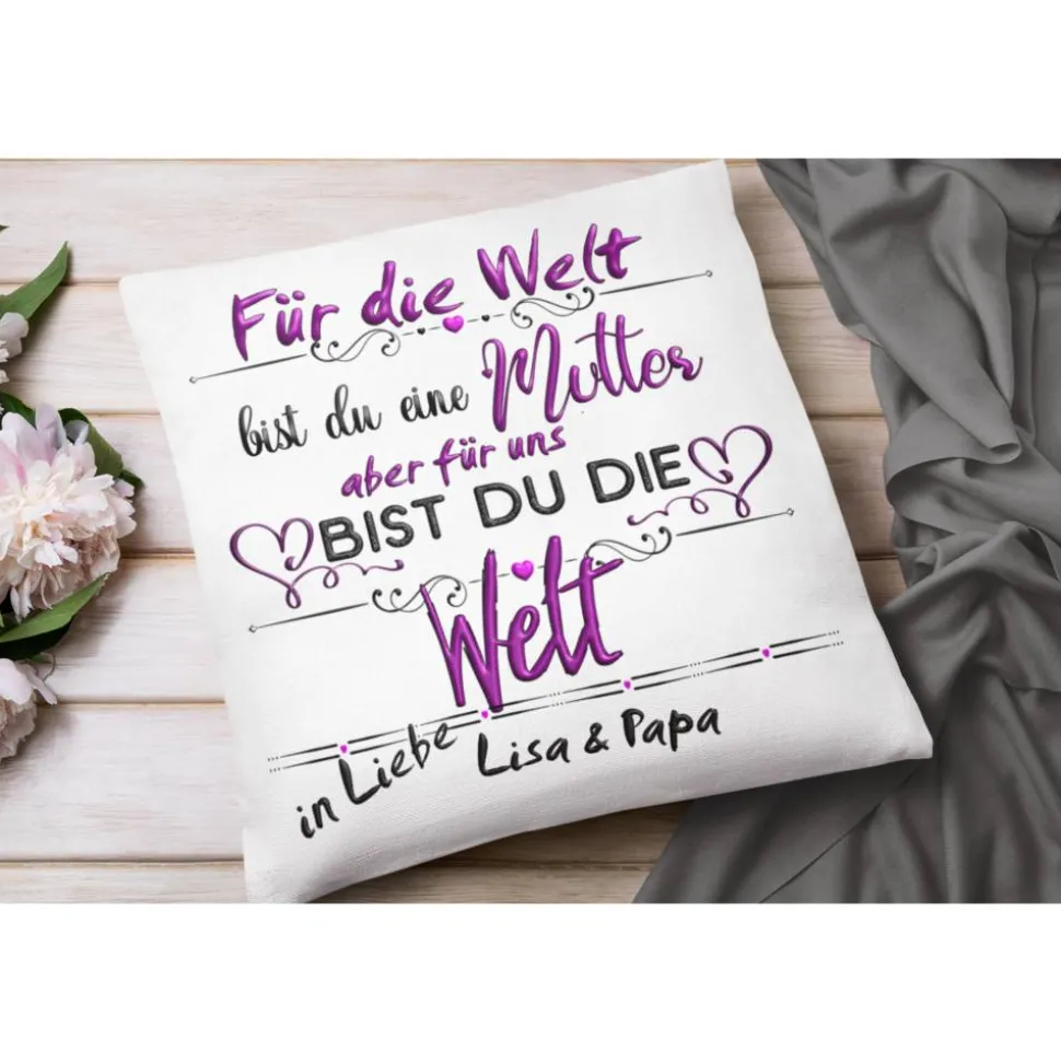 Ihr Mama Kissen mit Hübschen muttertags Motiv . Personalisieren Sie ihr eigenes Kissen mit Wunschnamen und erhalten somit ein Unikat an einem Namenskissen.