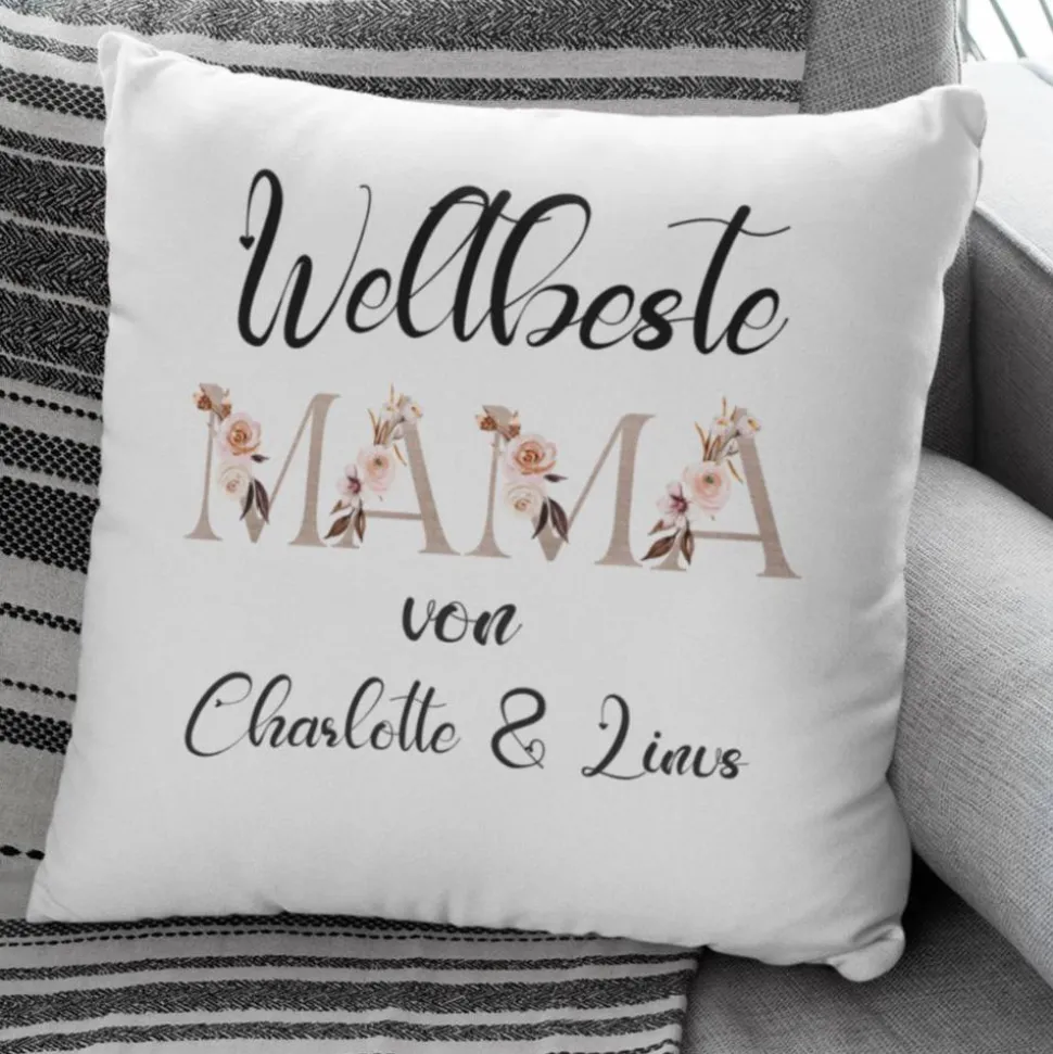 Ihr Mama Kissen mit Hübschen muttertags Motiv . Personalisieren Sie ihr eigenes Kissen mit Wunschnamen und erhalten somit ein Unikat an einem Namenskissen.