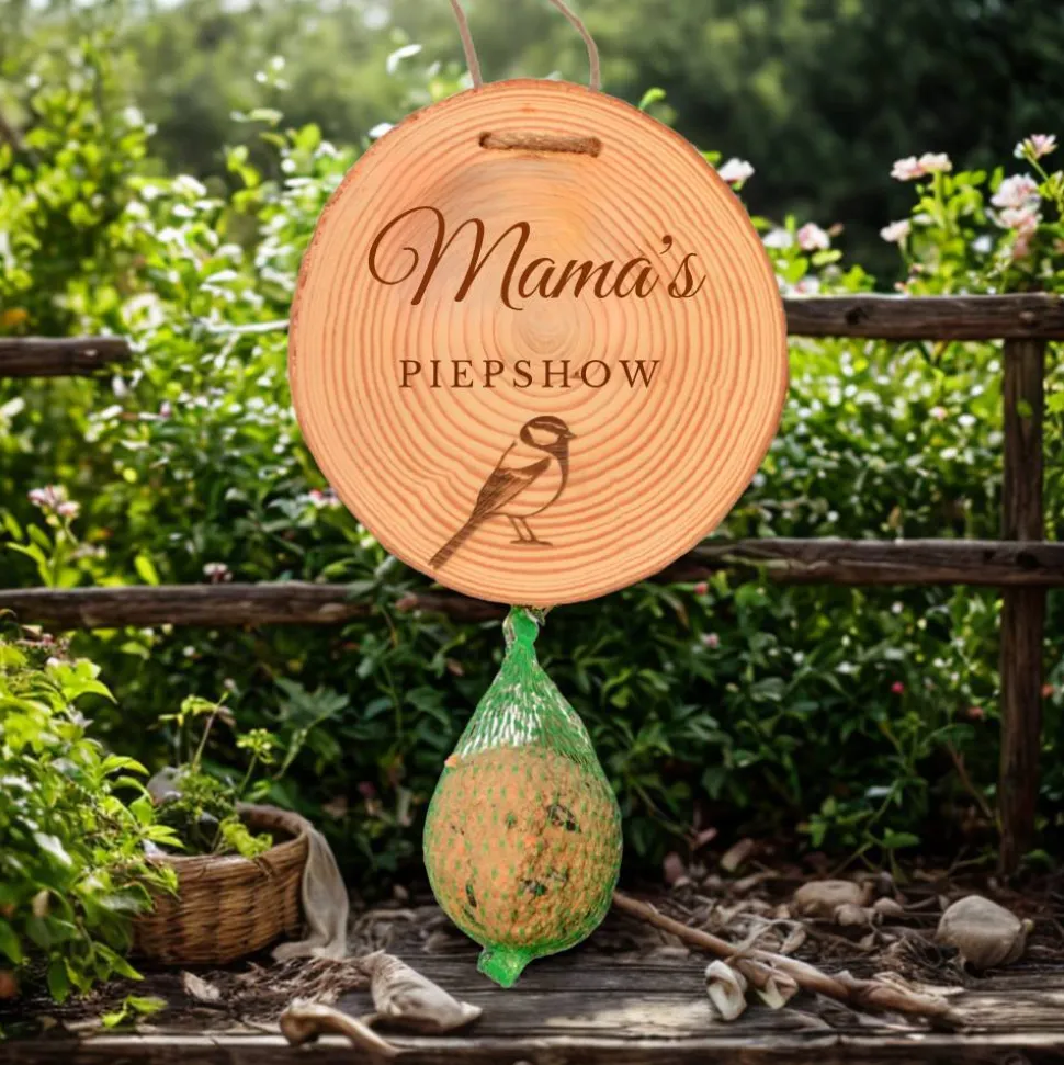 Unser handgefertigter Meisenknödelhalter mit dem charmanten Schriftzug Mamas Piepshow wird mit Leidenschaft und Handwerkskunst in unserer kleinen Werkstatt gefertigt. Jedes Stück wird sorgfältig von Hand geschliffen, um eine makellose Oberfläche zu gewährleisten. Unsere einzigartigen Designs werden präzise in das Holz gelasert, um einen Hauch von Individualität zu verleihen.