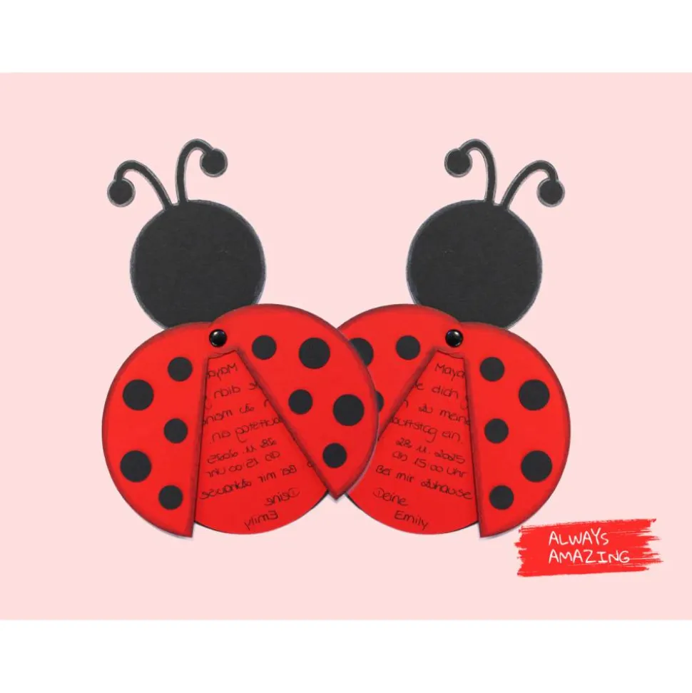 Unser Bastelset ist speziell für Bastelfans aller Könnensstufen konzipiert. Ob du Anfänger bist oder schon Erfahrung hast, mit den klaren Schritt-für-Schritt-Anleitungen und dem hochwertigen Material gelingt dir im Handumdrehen ein bezauberndes Ergebnis. Die Einladungskarten sind mit einem niedlichen Marienkäfer-Motiv gestaltet, das besonders bei Kindern für Begeisterung sorgt.