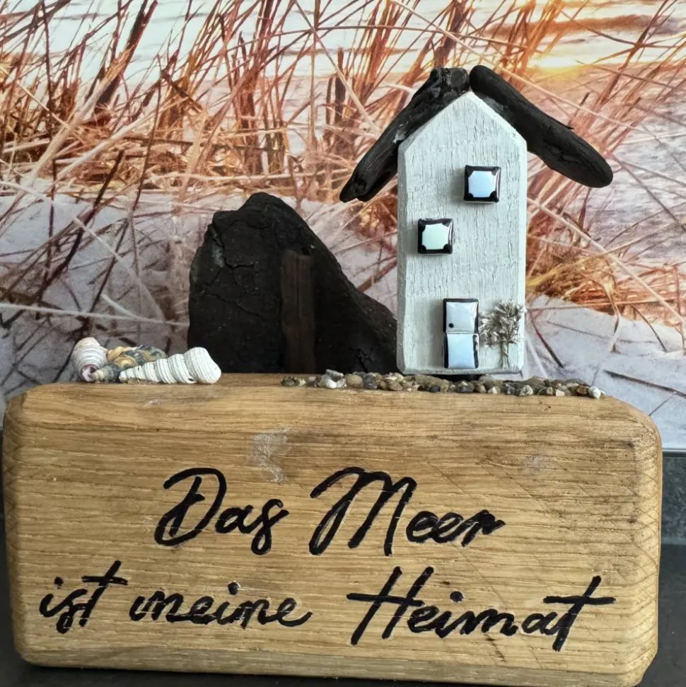 Bringe das beruhigende Flair des Meeres in dein Zuhause! Die maritime Tischdekoration besteht aus handgefertigten Deko Häusern aus Holz und sorgfältig ausgewähltem Treibholz. Jedes Häuschen ist ein liebevolles Unikat und erzählt seine eigene Geschichte. Die natürlichen Materialien und die maritimen Details sorgen für eine entspannte, gemütliche Atmosphäre in jedem Raum.