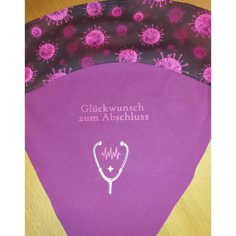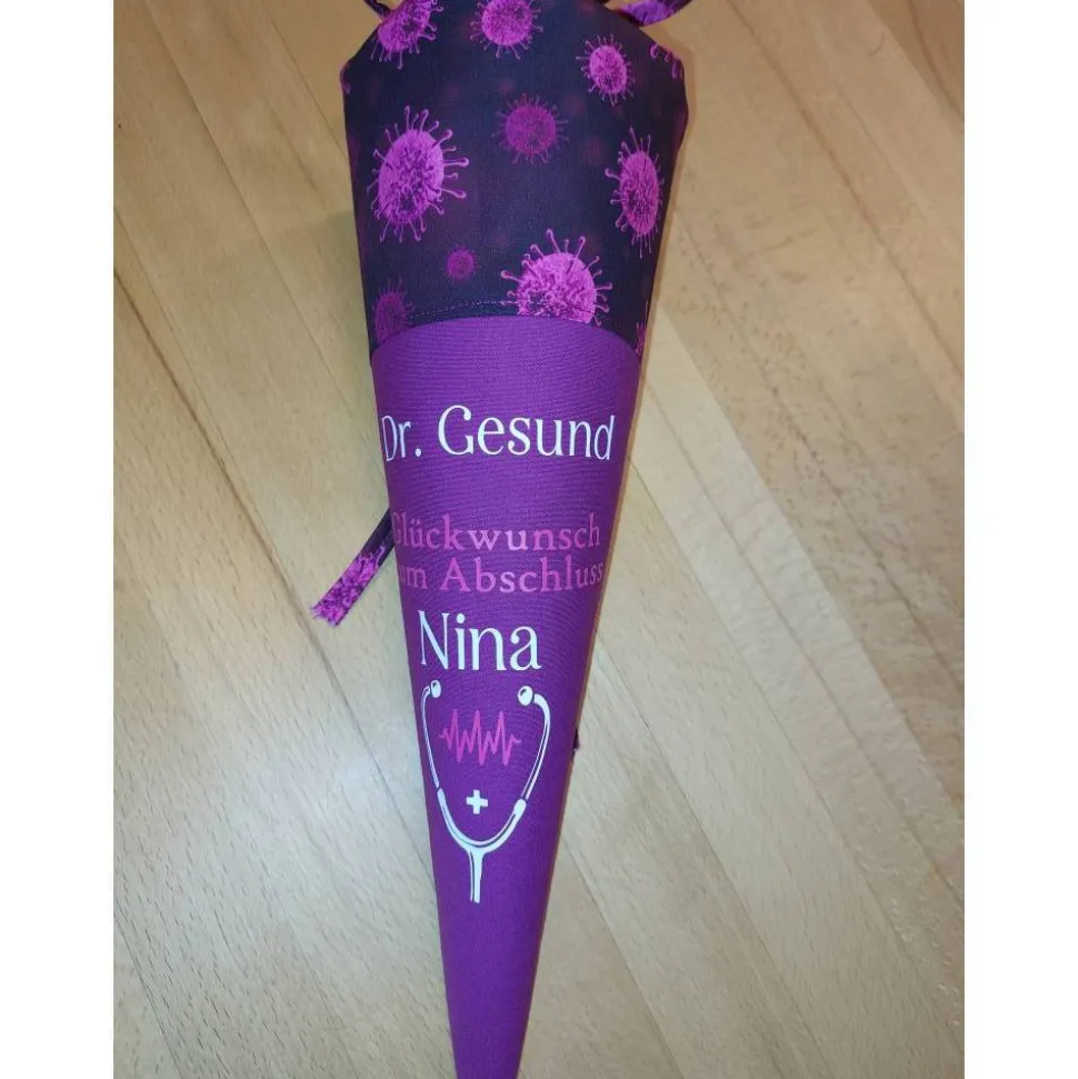 ➡ Standardmäßig wird die Schultüte folgendes angebracht: * Spruch „Glückwunsch zum Abschluss“ (sollte der Spruch gewünscht sein, bitte kurze Info bei Abschluss der Bestellung oder zeitnah per Nachricht)* Motiv eines Stethoskops (Motiv des Stethoskops ist KI-generiert angelehnt)* optional: Wunschtext