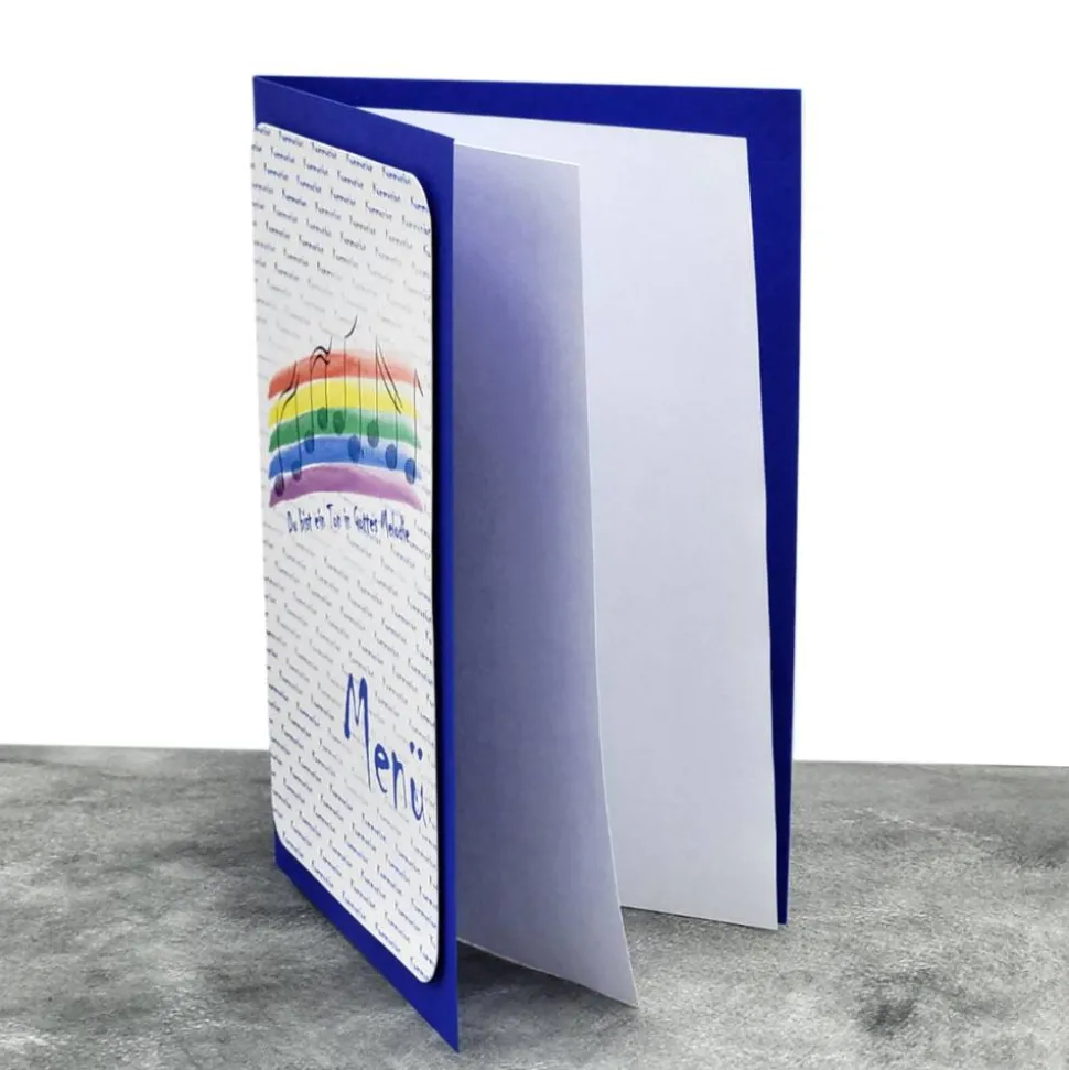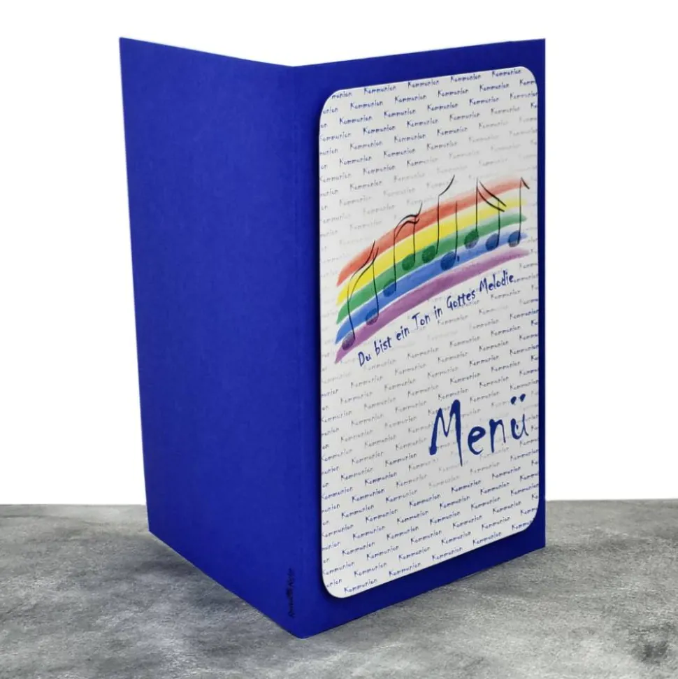 Gestalte deine besondere Kommunionfeier mit der handgemachten Menükarte „Du bist ein Ton in Gottes Melodie“!