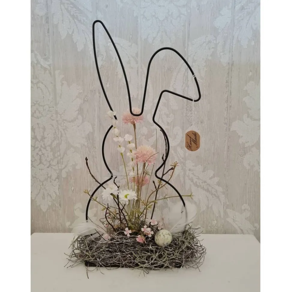 Metallhase mit Frühlingsblumen Handarbeit 40 cm
