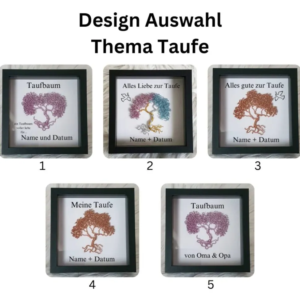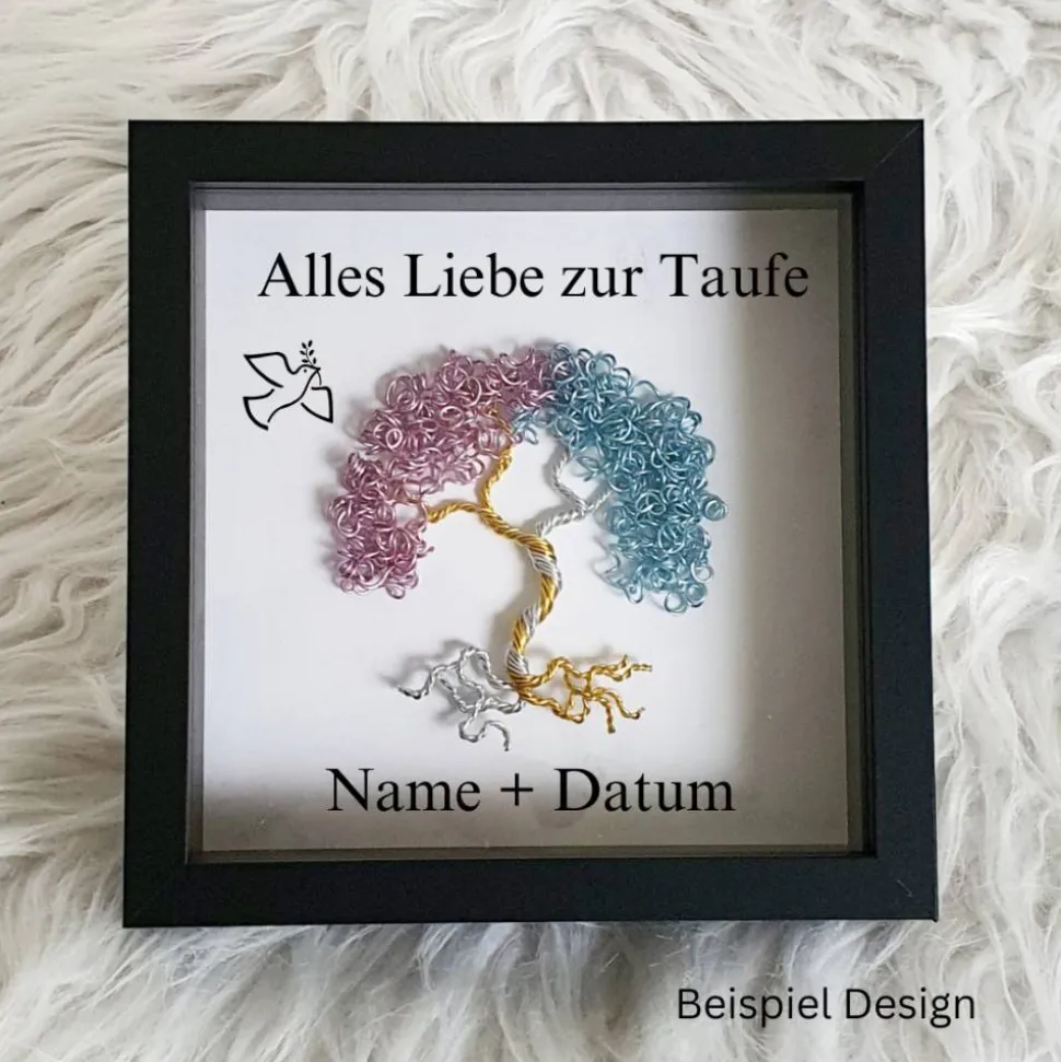 Mini Drahtbaum Geschenk zur Taufe / Taufbaum/ Personalisierter Bilderrahmen / Lebensbaum /Taufrahmen