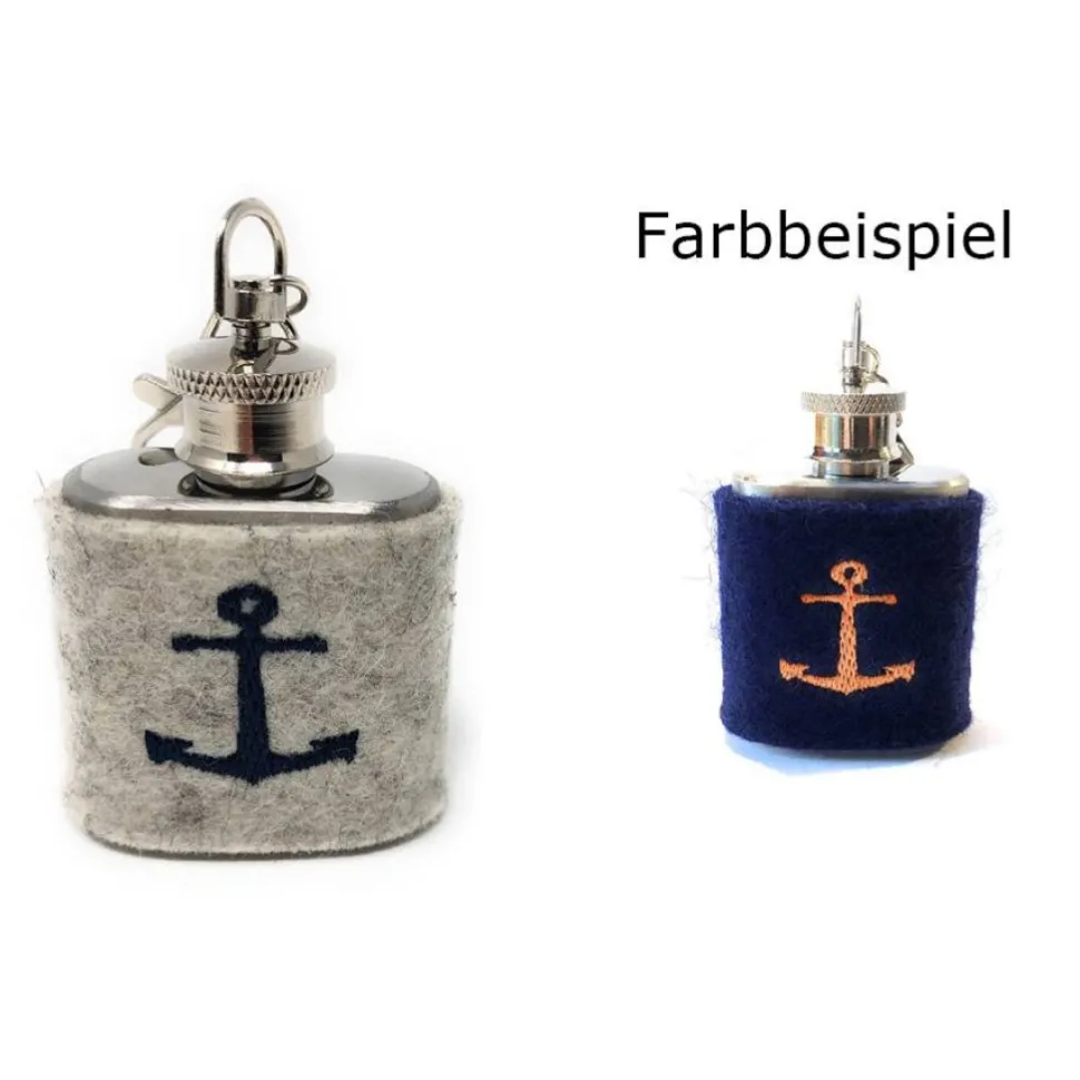 Nicht nur das perfekte kleine Männergeschenk. Die Hülle besteht aus 2 mm starkem Wollfilz und wurde mit einem Anker bestickt. Das Motiv wurde von mir entworfen und als Stickdatei digitalisiert.