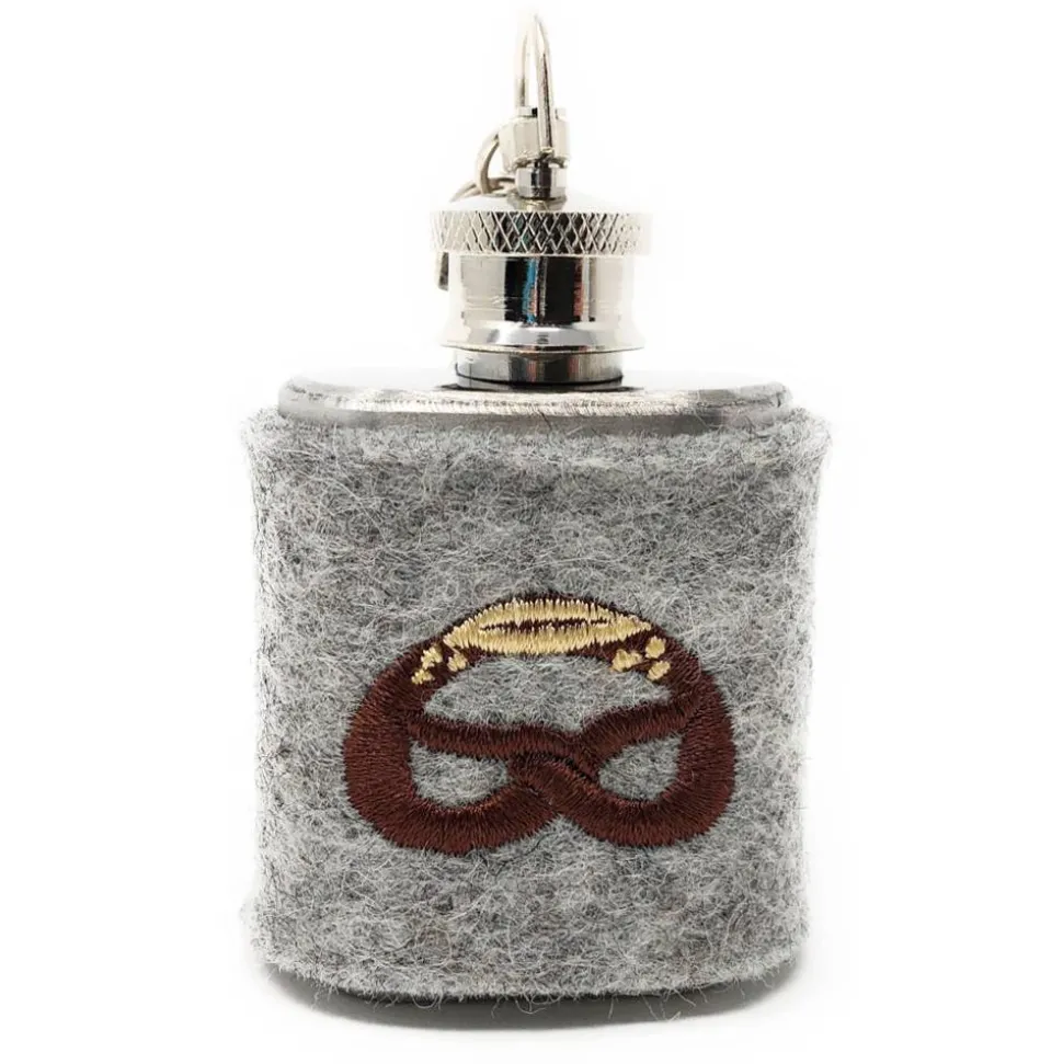 Der Flachmann besteht aus Edelstahl und hat ein Fassungsvermögen von ca. 30 ml (1 oz).