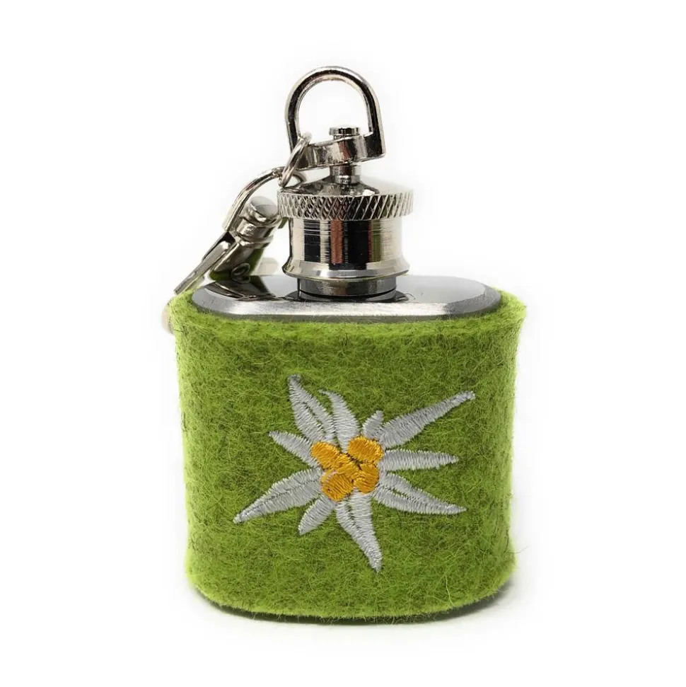 Der Flachmann besteht aus Edelstahl und hat ein Fassungsvermögen von ca. 30 ml (1 oz).