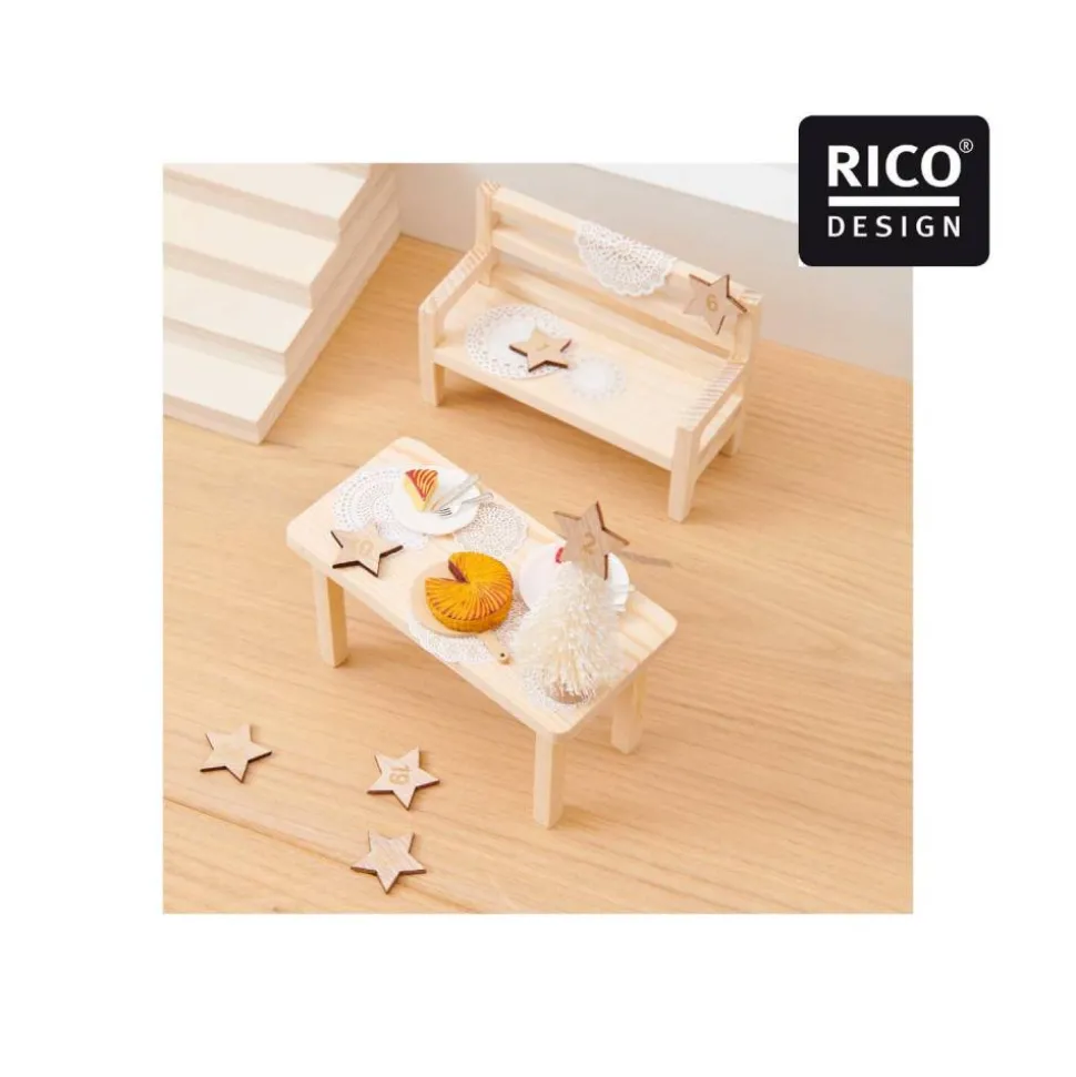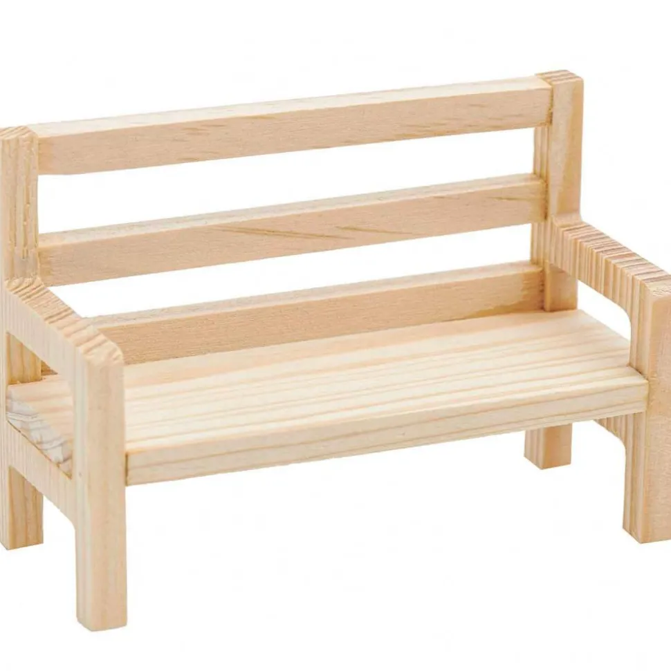 Miniatur Bank aus Kiefernholz als perfektes Zubehör für die Wichteltür.