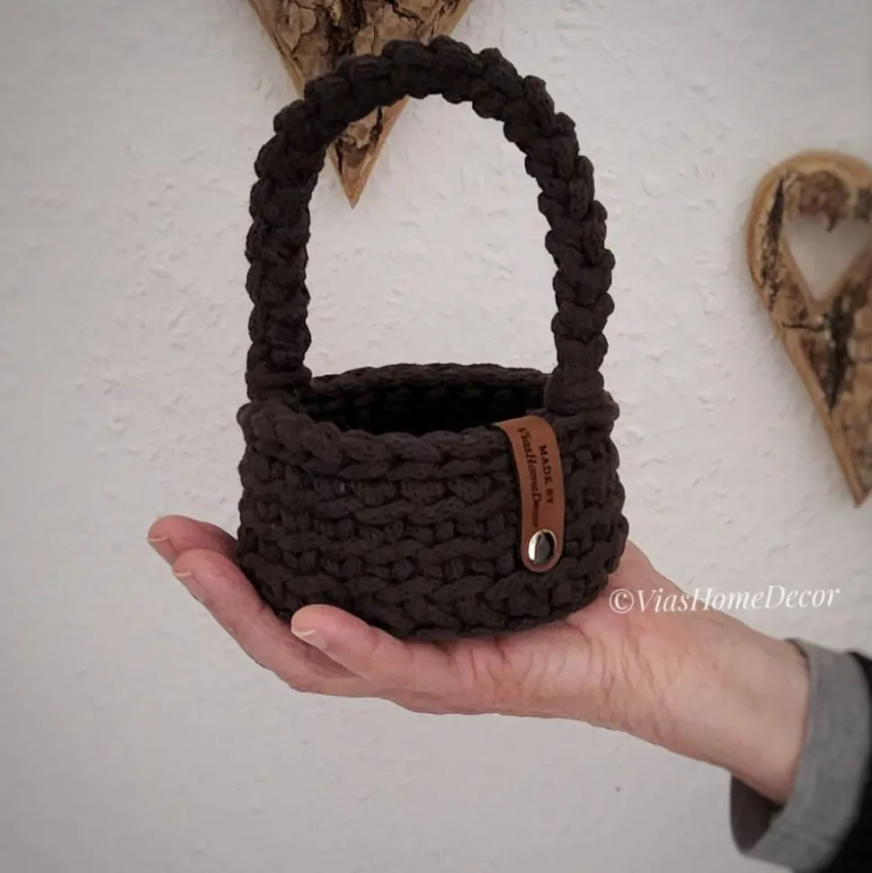 Klein, charmant und handgemacht: Dieser Mini-Geschenkkorb mit gehäkeltem Boden ist perfekt, um kleine Aufmerksamkeiten stilvoll zu verpacken.