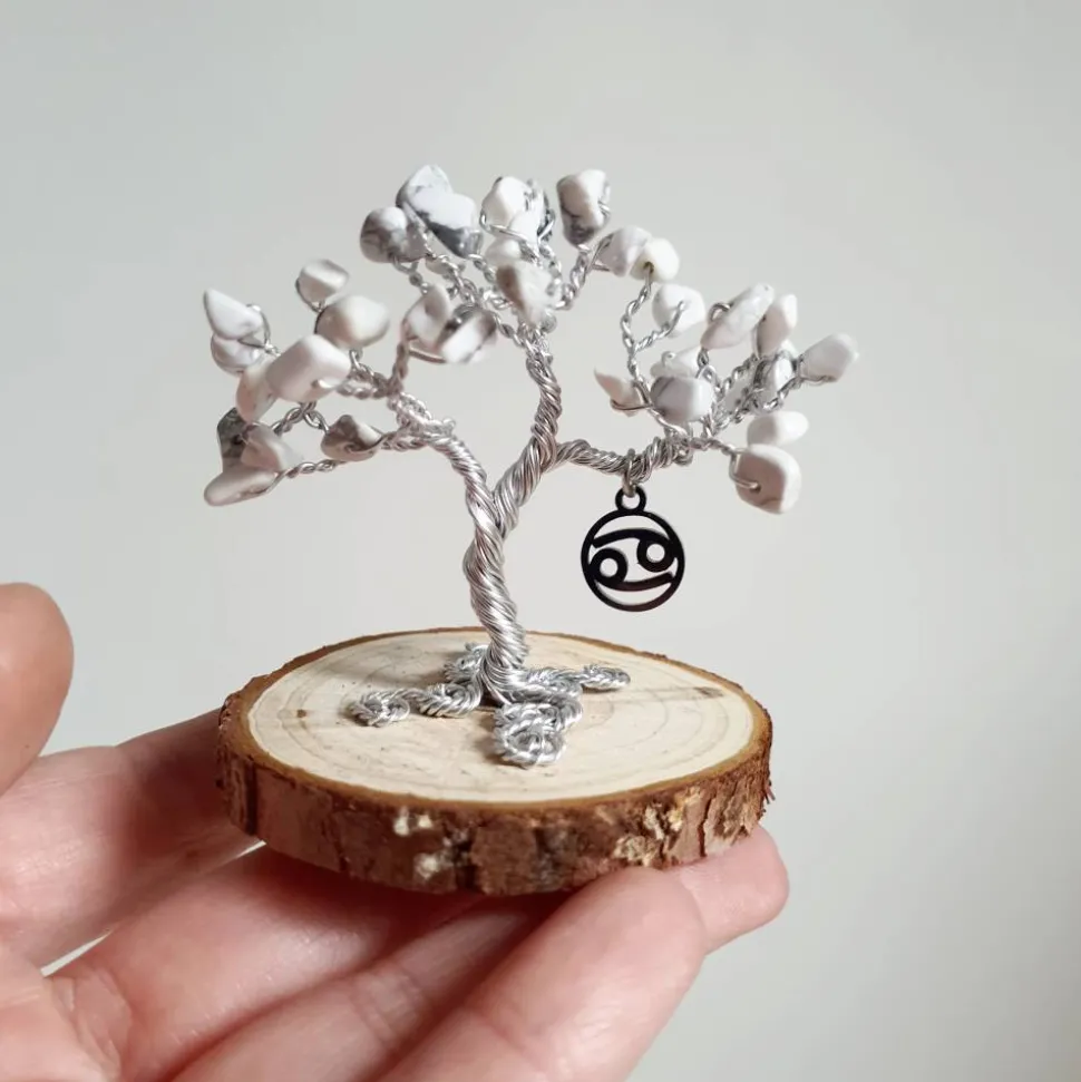 Der Sternzeichenbaum steht symbolisch für Eigenschaften, die mit dem jeweiligen Sternzeichen verbunden werden. Der verwendete Edelstein greift diese Zuordnung optisch auf und verleiht dem Baum seinen individuellen Charakter. Dabei steht die Gestaltung im Vordergrund, nicht eine spirituelle Wirkung.