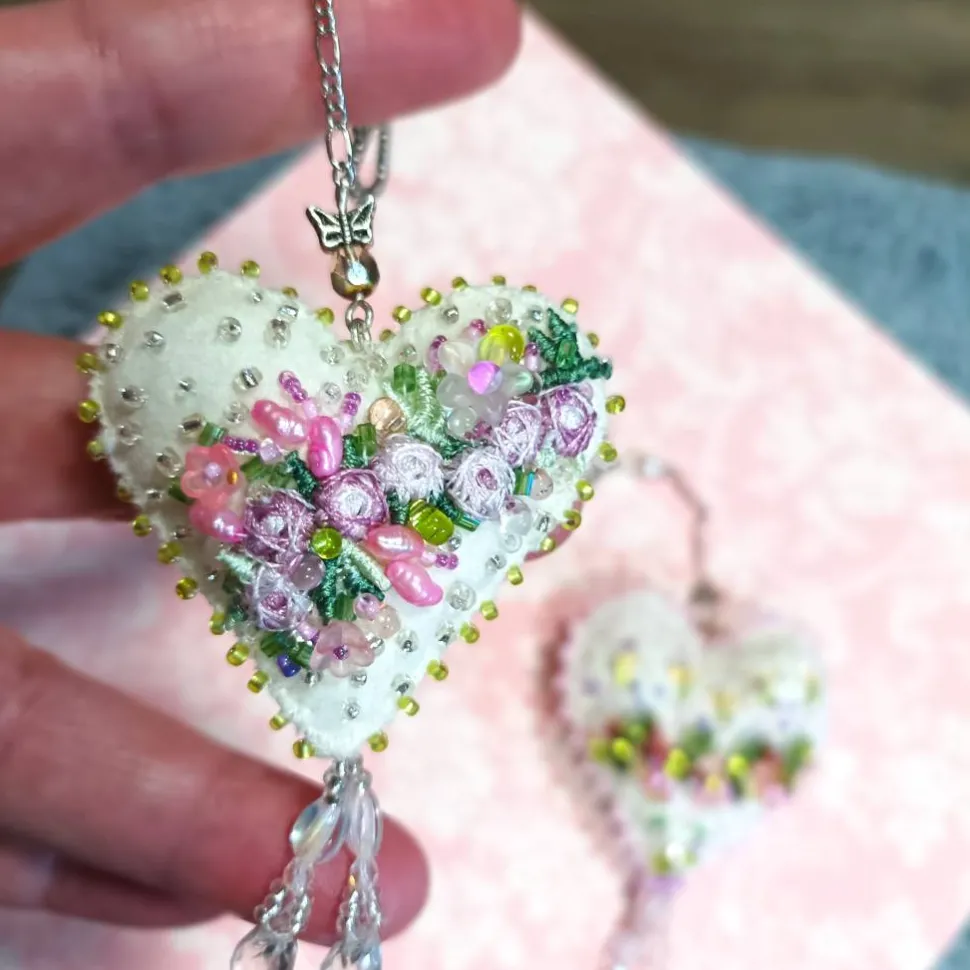 Die transparenten hellgrünen Glasperlen als Umrandung und das naturverbundene Design machen dieses Herz zur perfekten Dekoration auch am Fenster – für eine Taufe, zum Schulanfang oder als Highlight am Osterbaum, am Kerzenständer, Vintage-Schrank oder im Blumenstrauß mit Kirschblüten. Du kannst das Herz stilvoll am Kettchen platzieren und so verspielte Akzente mit viktorianischer Eleganz setzen.