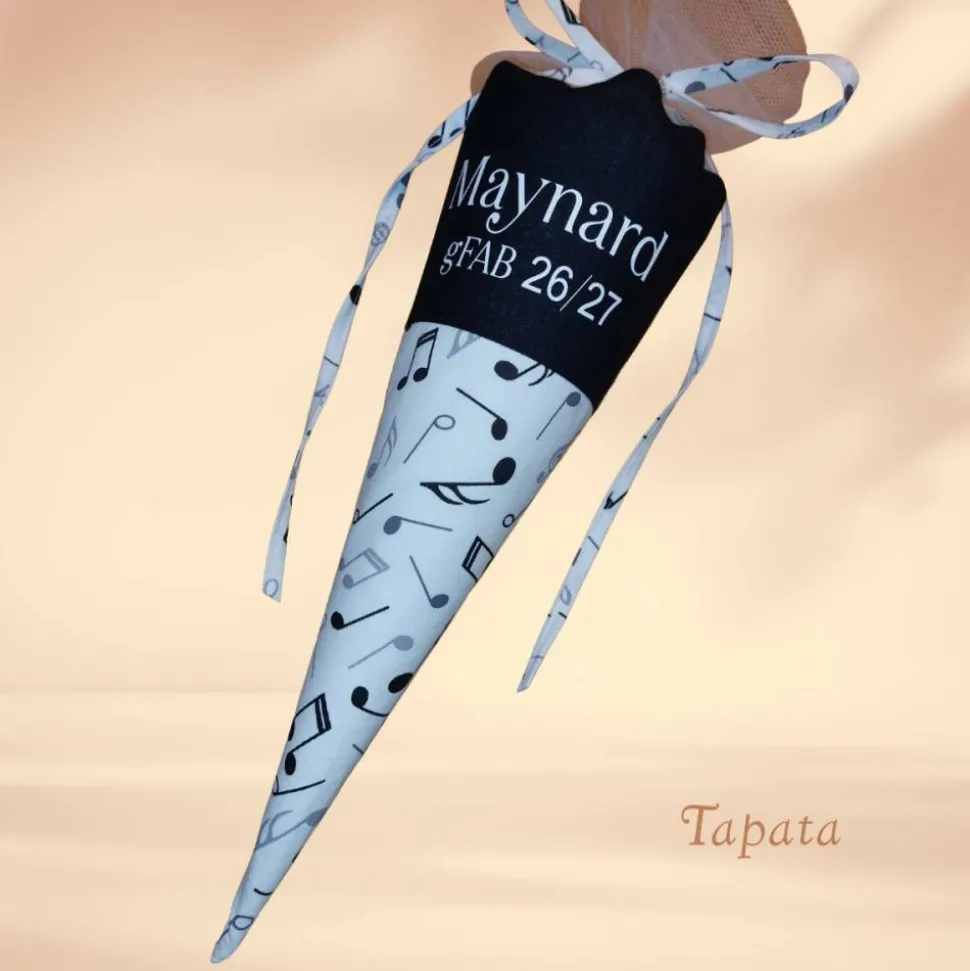 ➡ Namenswunsch: Auf Wunsch kann die Schultüte mit dem Namen oder einen Titel (z.B. Musiklehrer) versehen werden. Bitte geben Sie in das Feld Personalisierungswünsche den Wunschtext ein. Max. 20 Zeichen. Je nach Länge wird die Schriftgröße angepasst.