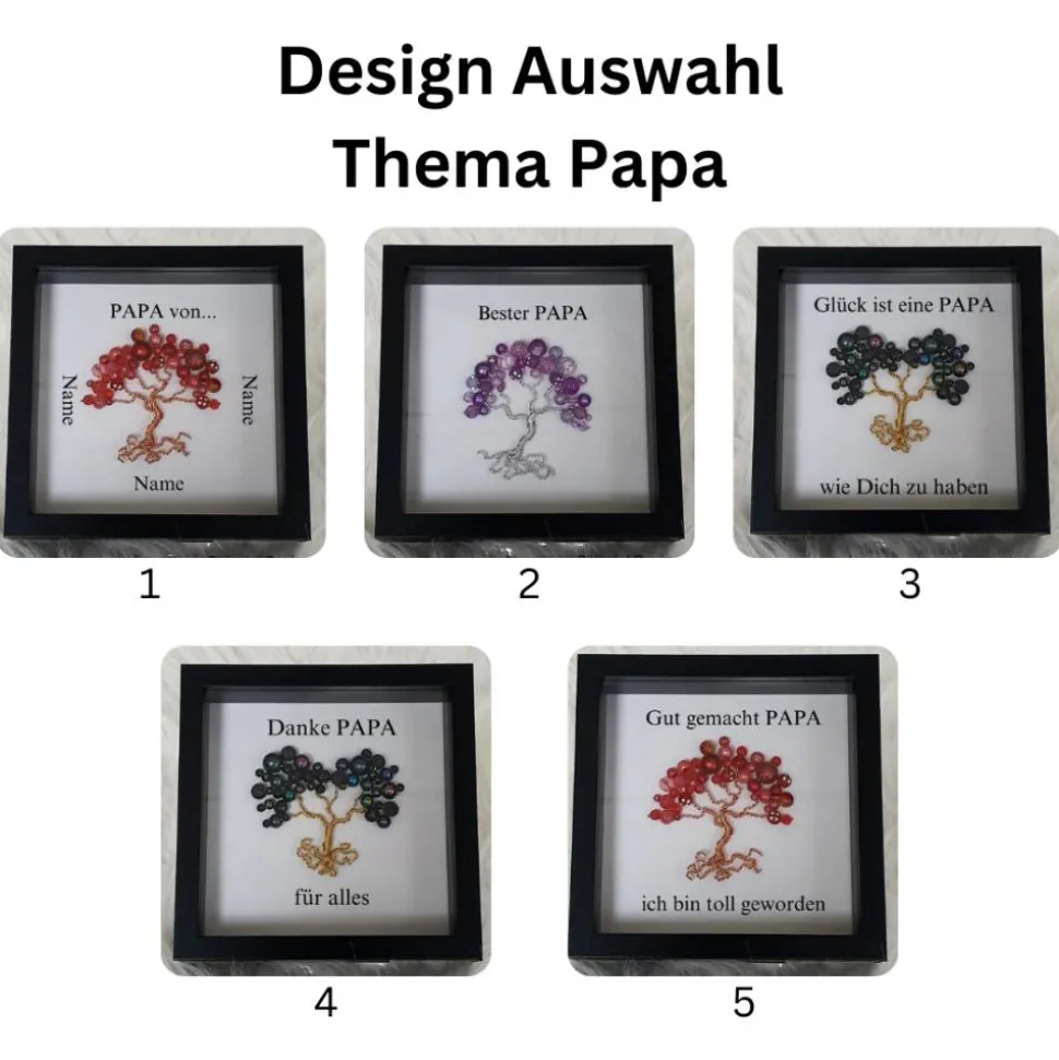 Sie können sich Ihren Perlenbaum ganz nach Ihren Wünschen anfertigen lassen. Da ich jeden Perlenbaum von Hand fertige kann ich solche Wunsch berücksichtigen. Die Bilder zeigen Ihnen wie der Perlenbaum ungefähr aussehen würde. Da jeder Perlenbaum ganz individuell gefertigt wird, sieht jeder anders aus. Für den Perlenbaum verwende ich fast 3 Meter Draht und zwischen 40 und 50 Perlen. Den ich von Hand mit speziellen Techniken biege und drahte. Um dieses Design zu fertigen. Sobald der Perlenbaum fertig ist wird dieser von mir in den 3D Bilderrahmen eingesetzt. Diesen können sie dann hinstellen oder anhängen.