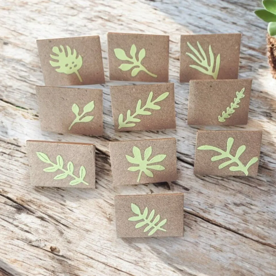 Du erhältst 10 kleine Umschläge mit je einem dekorativen grünen Zweig aus Papier und dazu passende 10 Mini Kärtchen. Die Umschläge bestehen aus hochwertigem Kraftpapier in den Farben braun, weiß und grün. Jeder Umschlag misst L 3,8 cm, B 2,8 cm, die Kärtchen sind L 3,5 cm, B 2,7 cm groß. Die Kärtchen bestehen aus edlem, weißem Designerkarton mit Marmor-Optik, die Zweige aus Papier. Dank des doppelseitigen Klebebands auf der Rückseite kannst du die Umschläge sicher verschließen.
