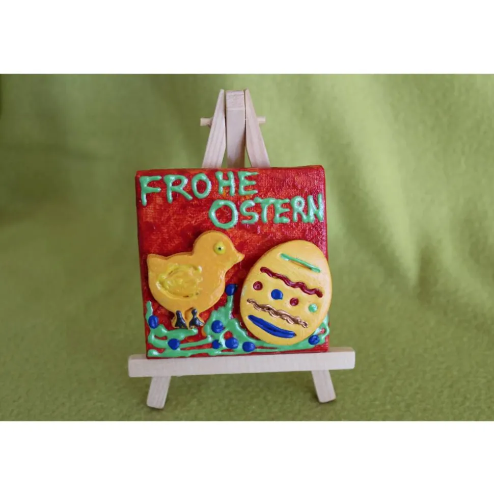 Minibild Collage  FROHE OSTERN  Küken und Osterei auf einem Minikeilrahmen Geschenk zu Ostern Osterdeko