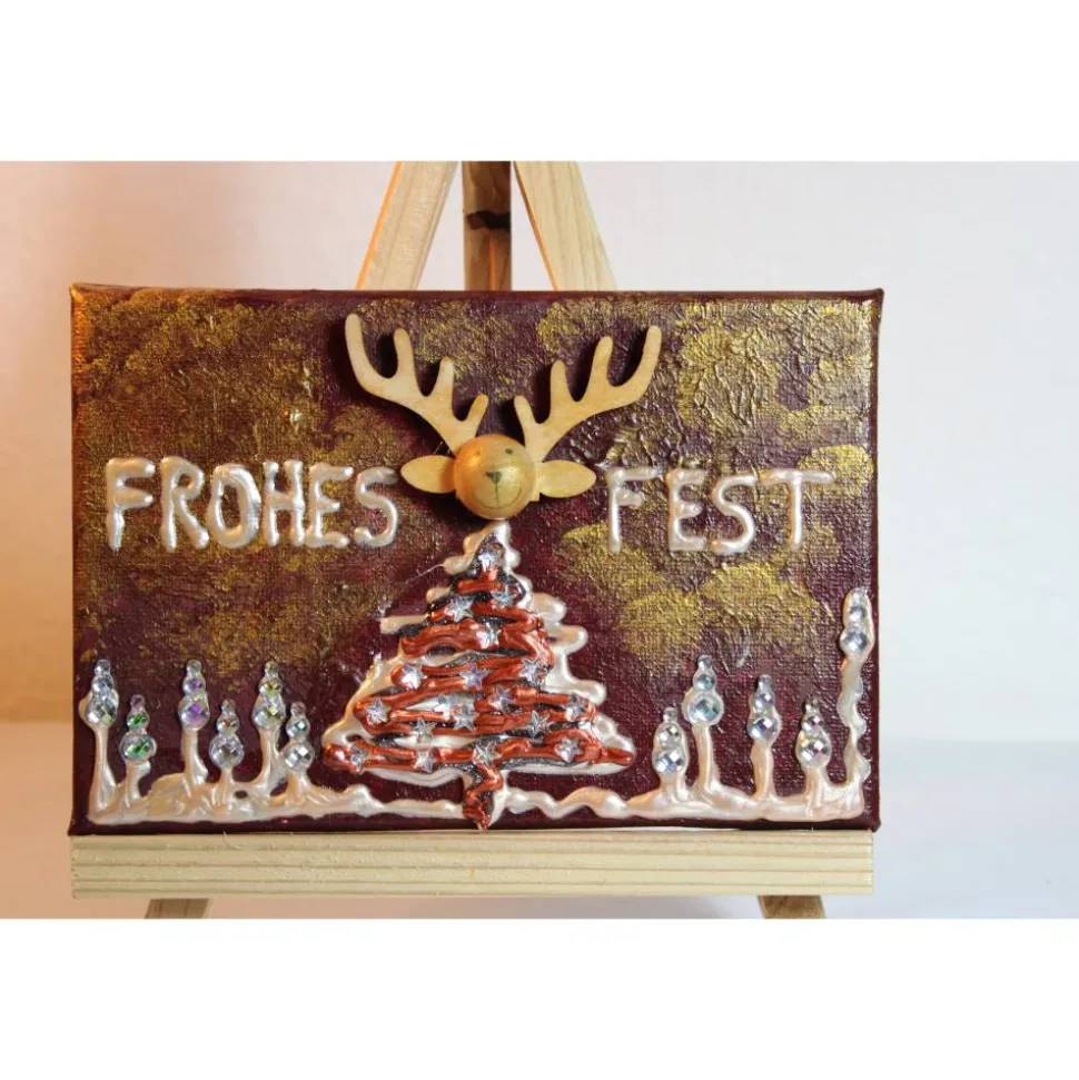 Größe: ca. 12×18 cm, Staffelei ist ca. 22 cm hoch, der Keilrahmen ist ca. 1 cm tief