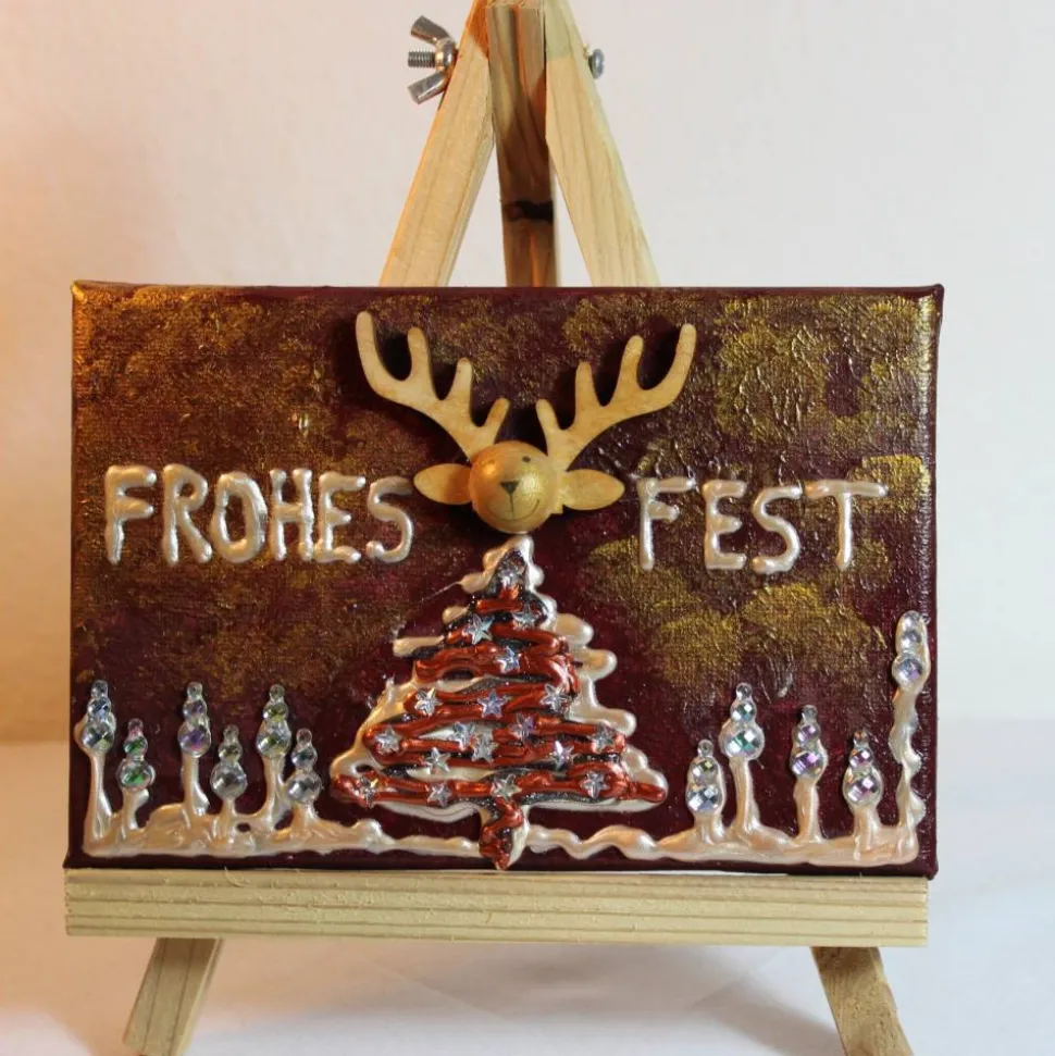 Acrylfarben, Mini-Keilrahmen, Holz, inklusive passender Ministaffelei aus Holz.