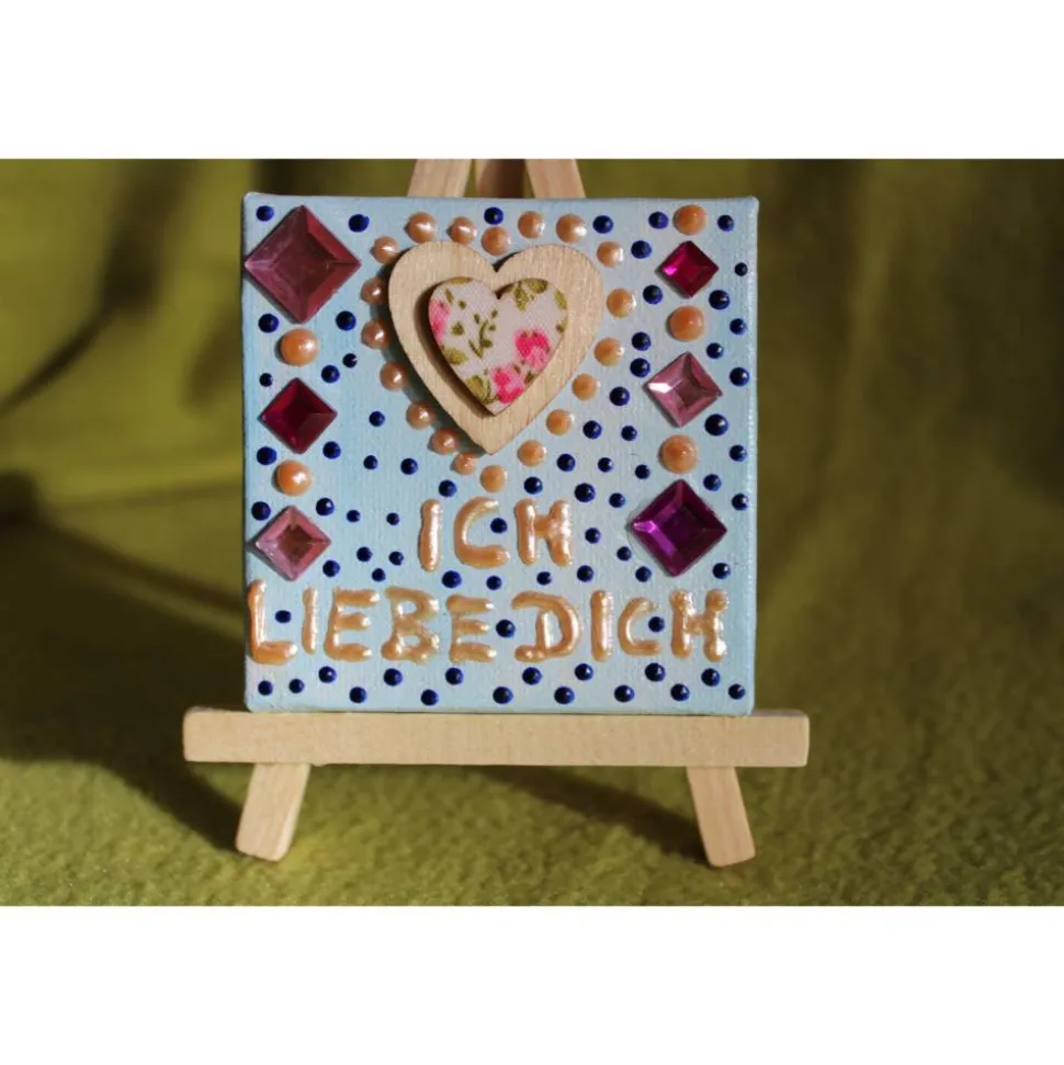 Minibild ICH LIEBE DICH  Acrylmalerei Keilrahmen Staffelei Geschenk zu Muttertag Valentinstag für Verliebte