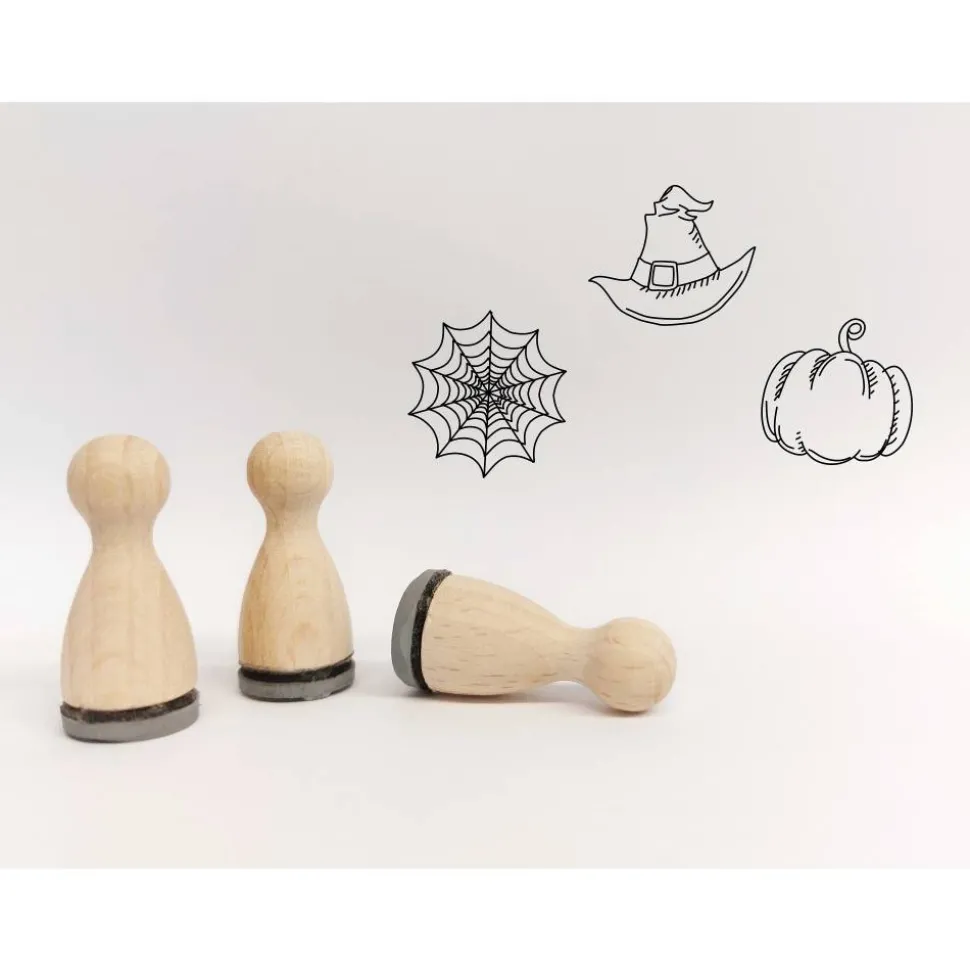 Ministempelset Halloween | 3 Stempel mit 12mm Durchmesser | Holzstempel Halloween / Allerheiligen | Spinnennetz Hexenhut
