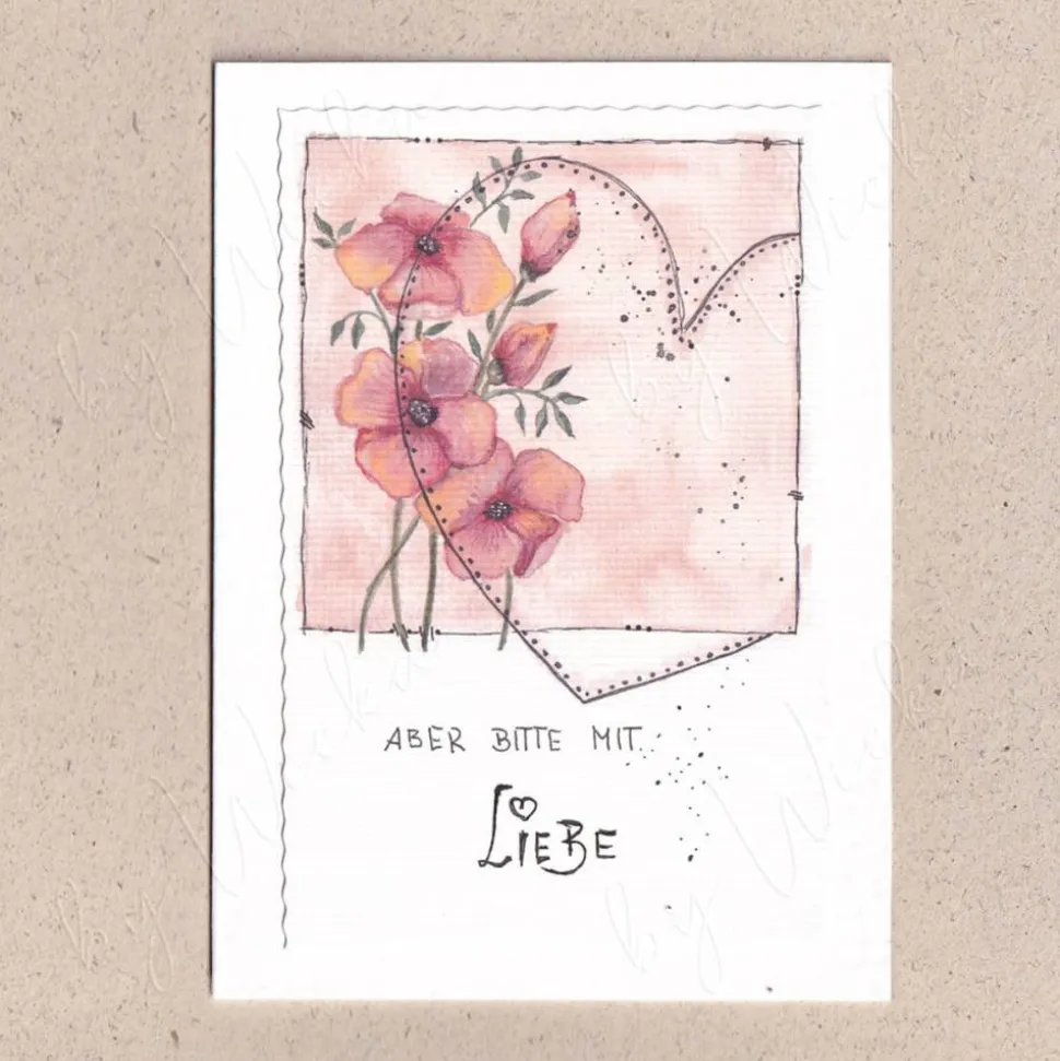 Handgemalte Klappkarte „Aber bitte mit Liebe“ Rote Blüten mit Herz