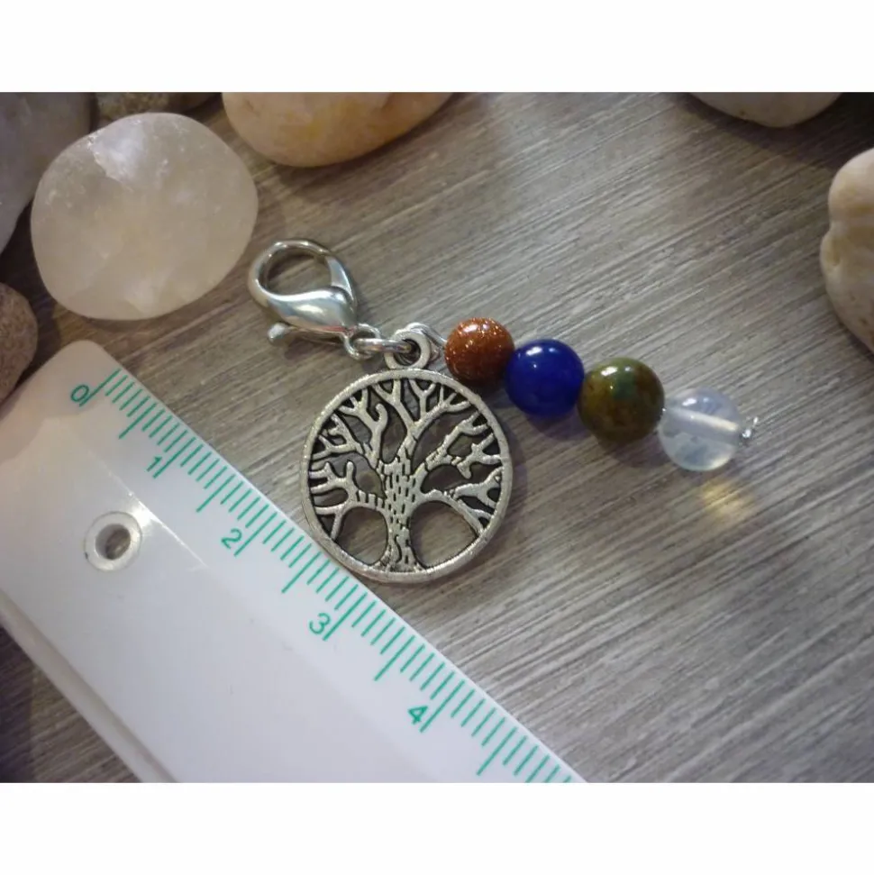 Der Lebensbaum und der Perlenanhänger sind mit einer Metallöse an dem ca 16mm hohem Karabiner befestigt.