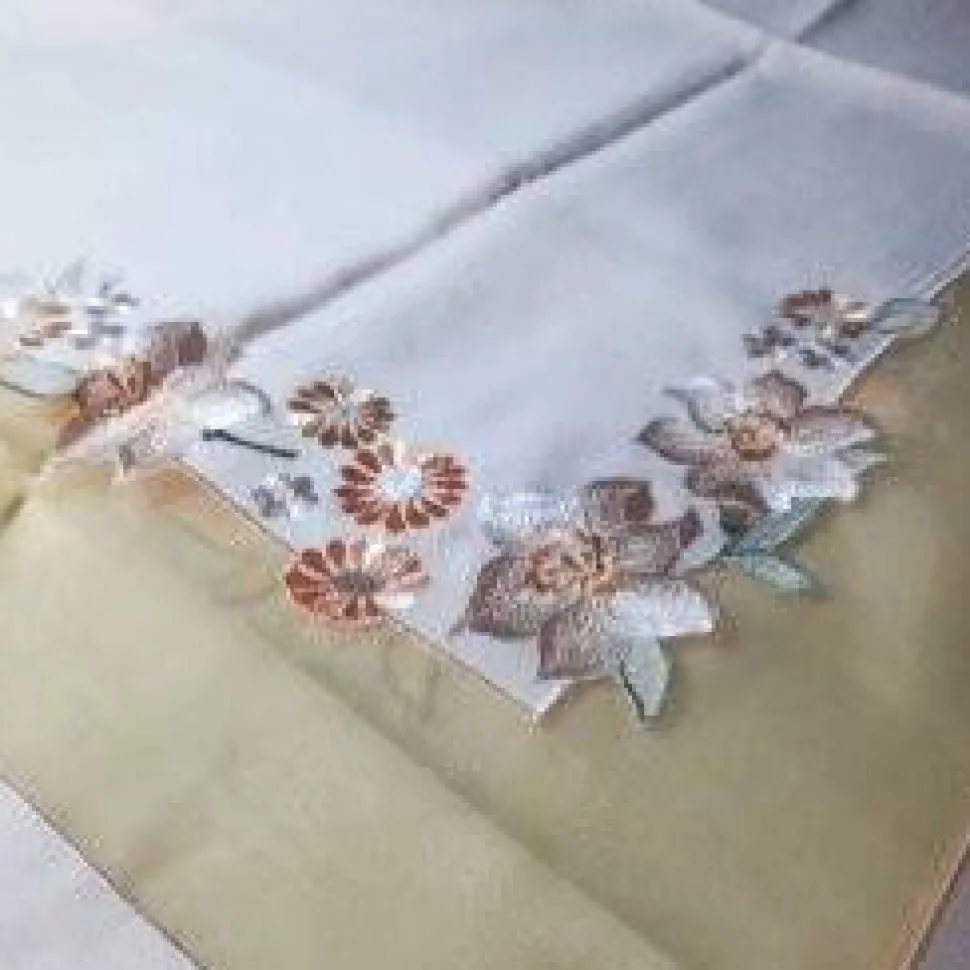 Diese Mitteldecke ist mit einer filigranen Maschinenstickerei bestickt.