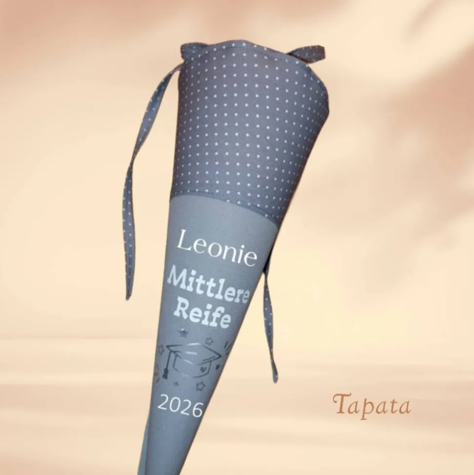 Angeboten wird eine kleine Schultüte mit einem passenden Spruch zum Realschulabschluss / Mittlere Reife. Jahreszahl wird entsprechend angepasst. Erhältlich ist sie als kleine Schultüte als Mitbringsel für die große Feier