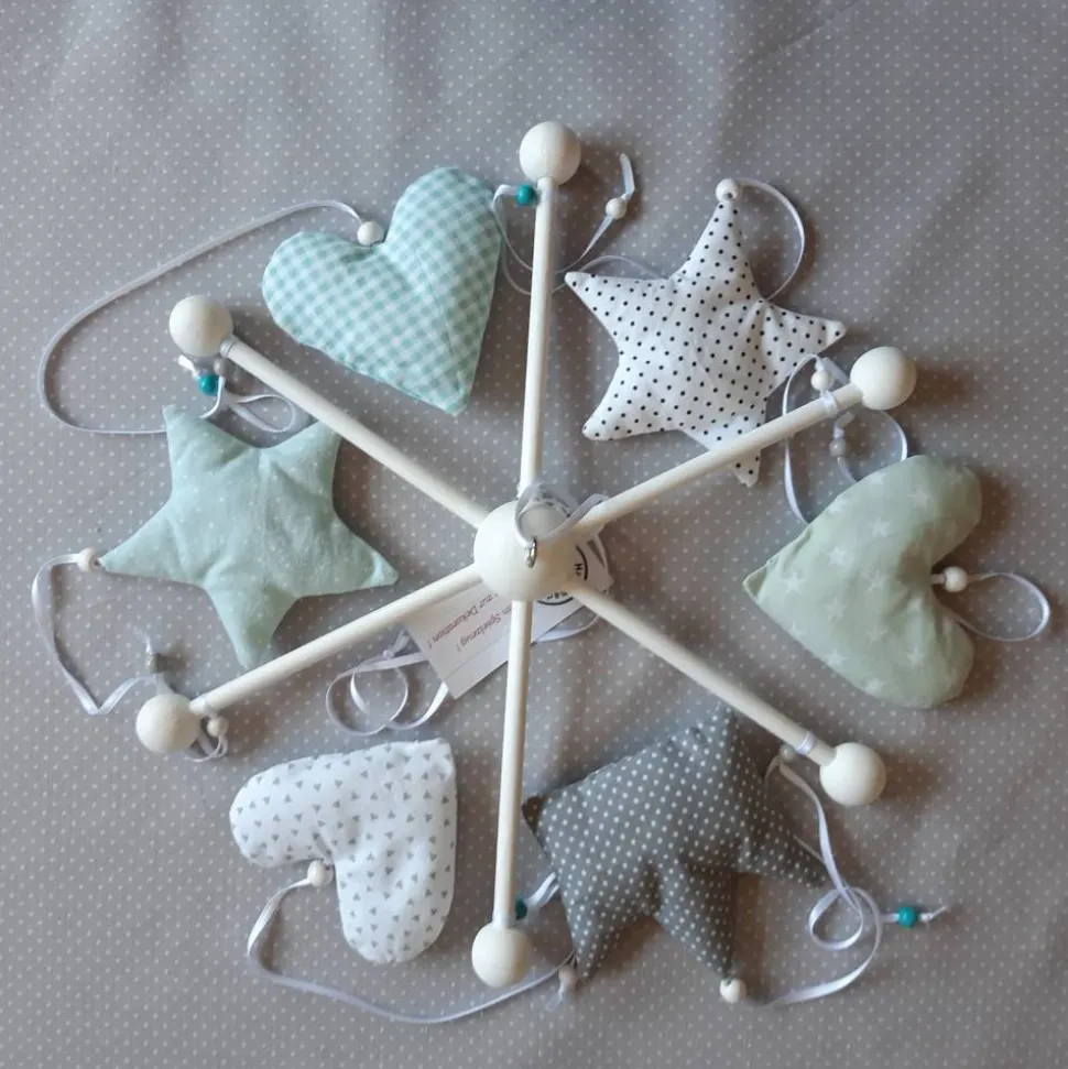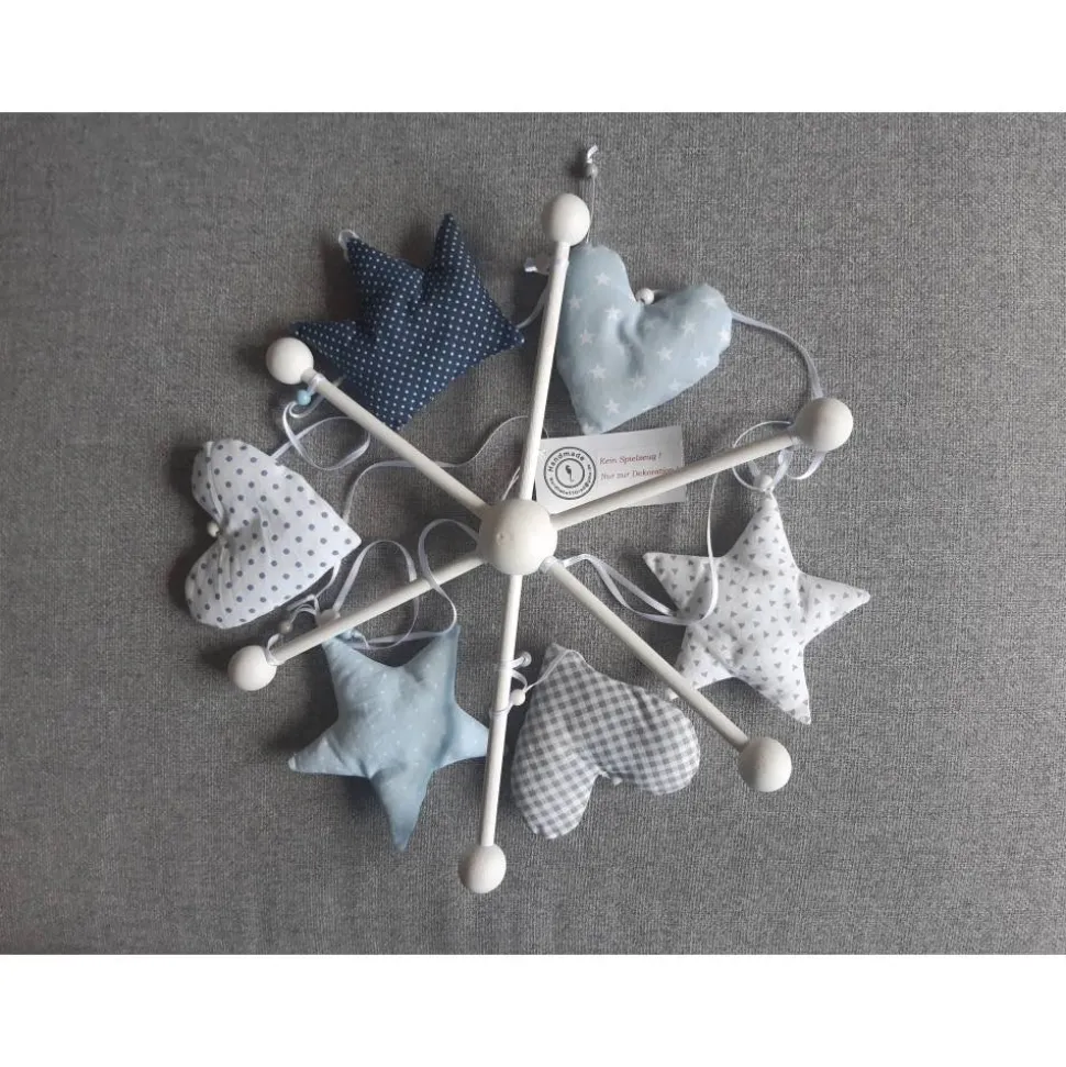 Das Mobile besteht aus: 1 Krone, 2 Sternen und 3 Herzen.