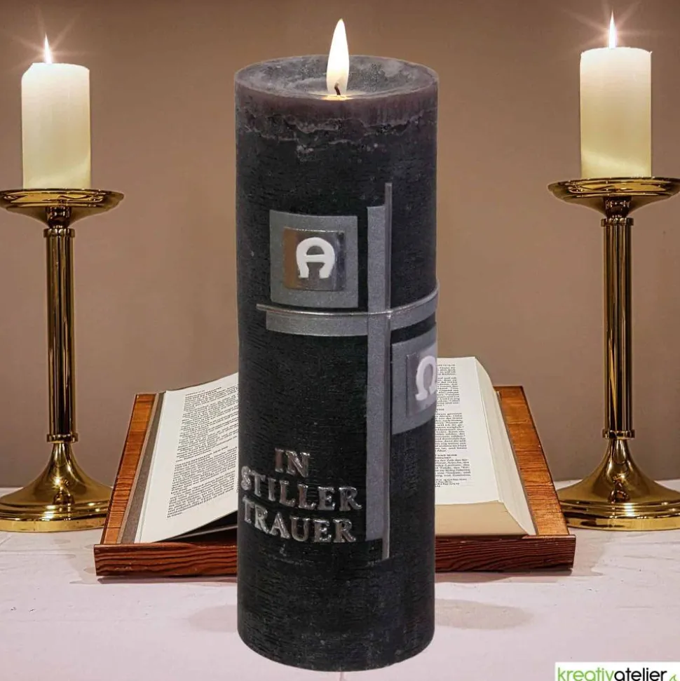 Diese moderne Trauerkerze eignet sich perfekt, um in Erinnerung an einen lieben Menschen zu gedenken und Abschied zu nehmen. Sie ist eine stilvolle und zeitgemäße Alternative zu traditionellen Trauerkerzen und kann in Kirchen oder auch zu Hause aufgestellt werden. Lassen Sie sich von dieser wunderschönen Gedenkkerze in stiller Trauer begleiten.