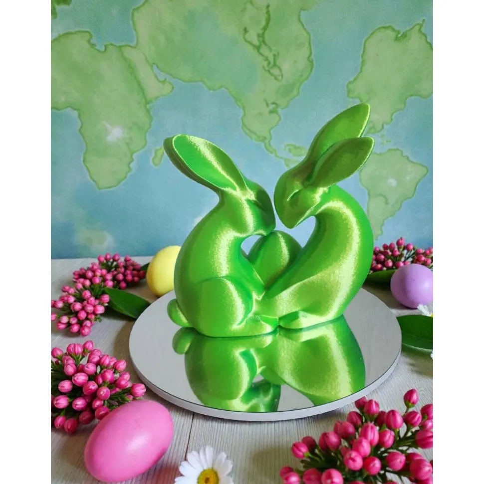 Schenke deinem Zuhause eine Prise moderne Frühlingsgefühle! Diese kunstvoll gestaltete Hasenfigur zeigt zwei Hasen, die sich schützend um ein Ei schmiegen. Ein Symbol für Verbundenheit, Liebe und den Neubeginn des Frühlings.