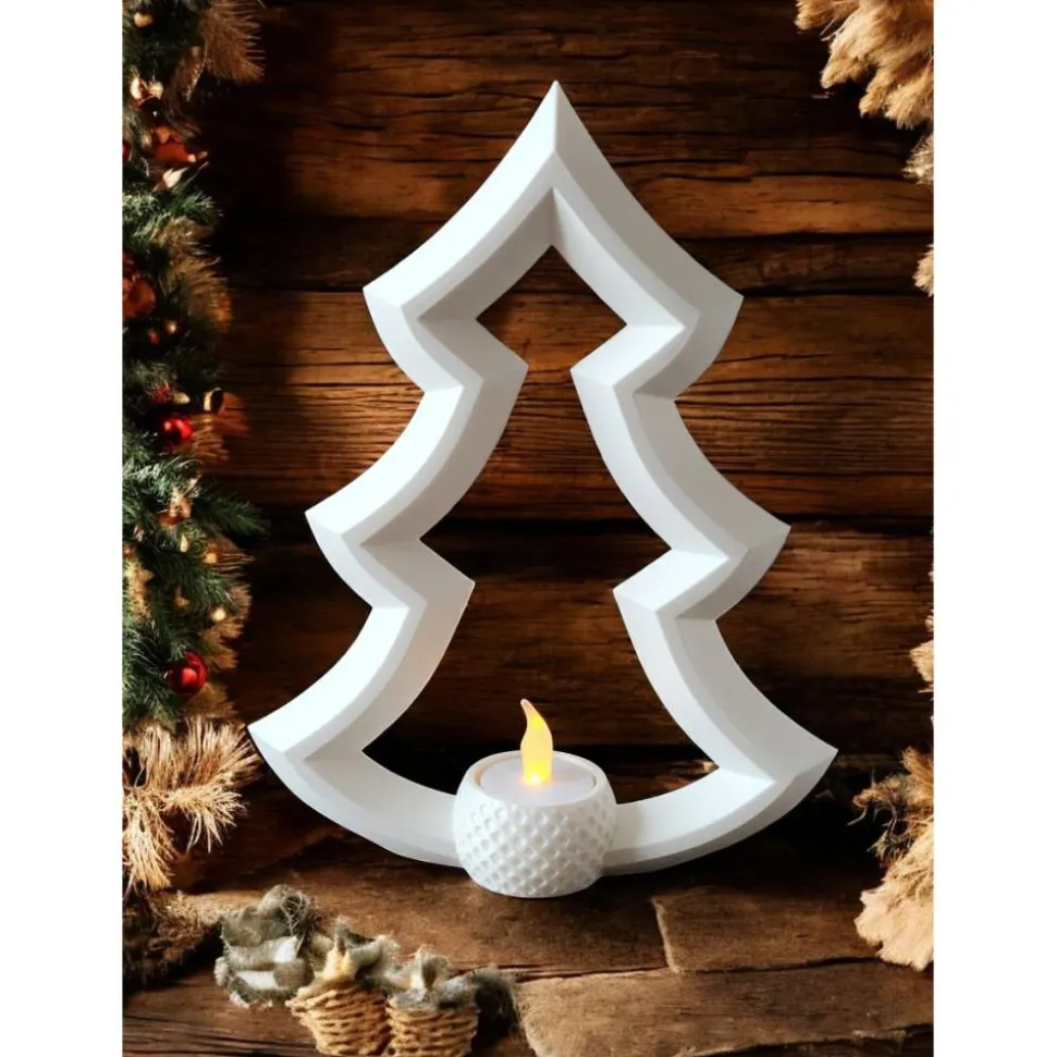 • Design: Moderner, konturierter Tannenbaum mit Teelichthalterung.