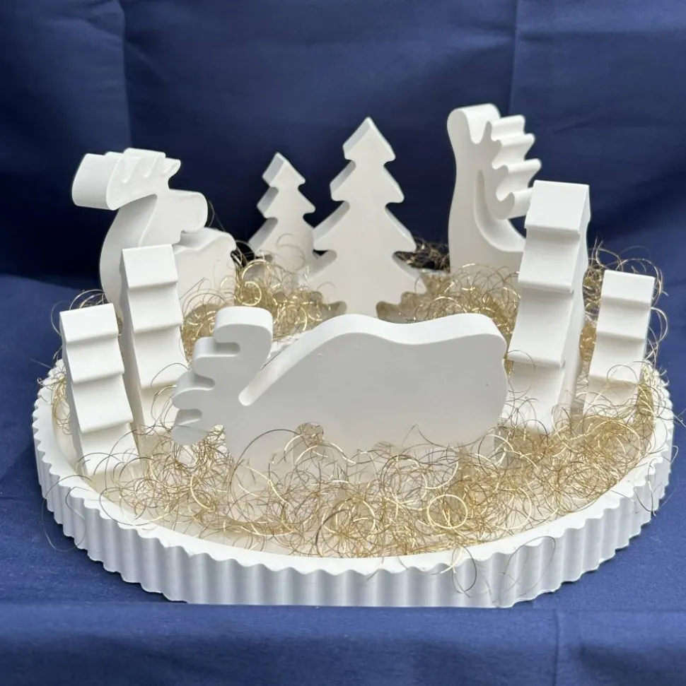 ✔ Figuren aus weißem Gips: Elche, Tannen, Geschenke