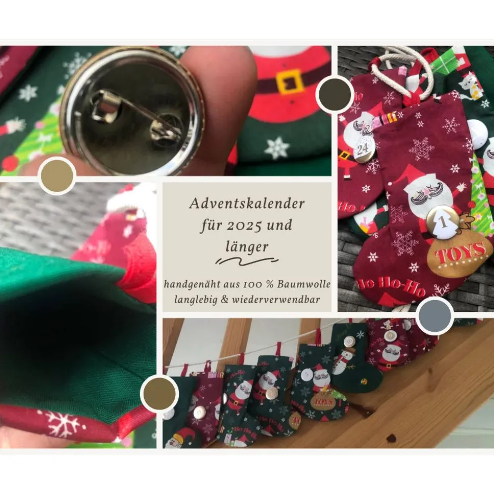 Erlebe den nachhaltigen Adventskalender Unikat zum Befüllen – handgefertigt aus 100 % Baumwolle, wiederverwendbar und individuell gestaltbar.