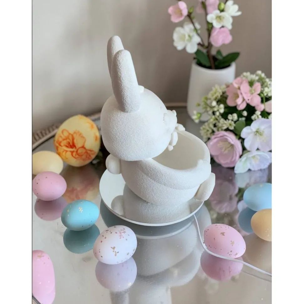 Die integrierte Schale bietet Platz für natürliche Osternester, Bio-Süßigkeiten oder Frühlingsblüher und ist eine langlebige Alternative zu kurzlebiger Wegwerf-Deko.