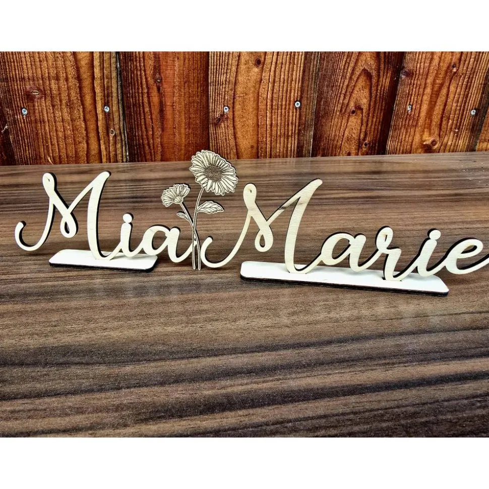 Namensaufsteller für deine Feier mit Wunschblume und Wunschtext.